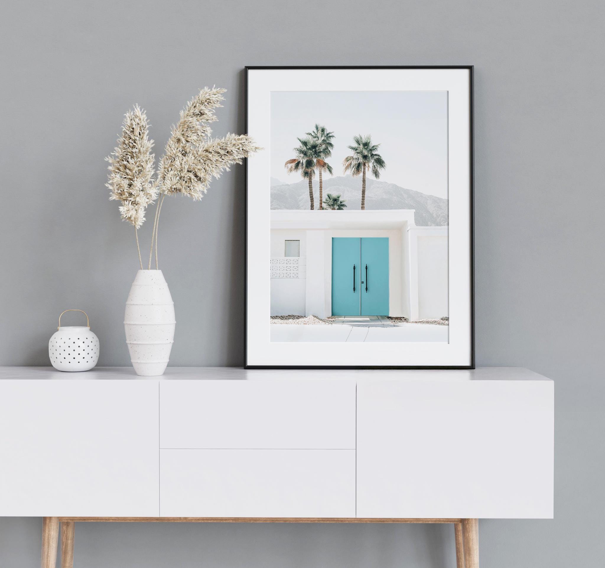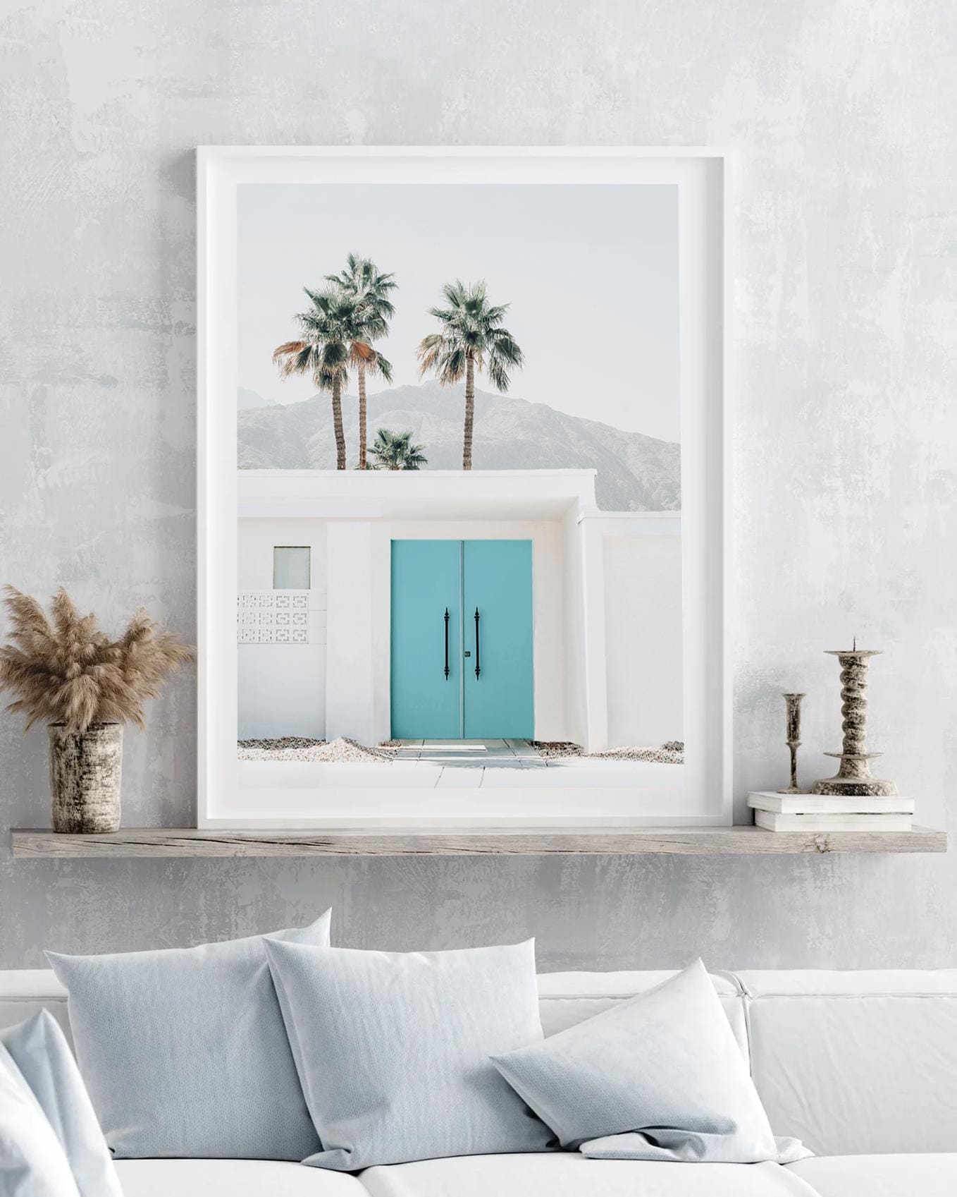 Palm Springs Architecture Print: Mid Century Blue Door House Modern Wall Art