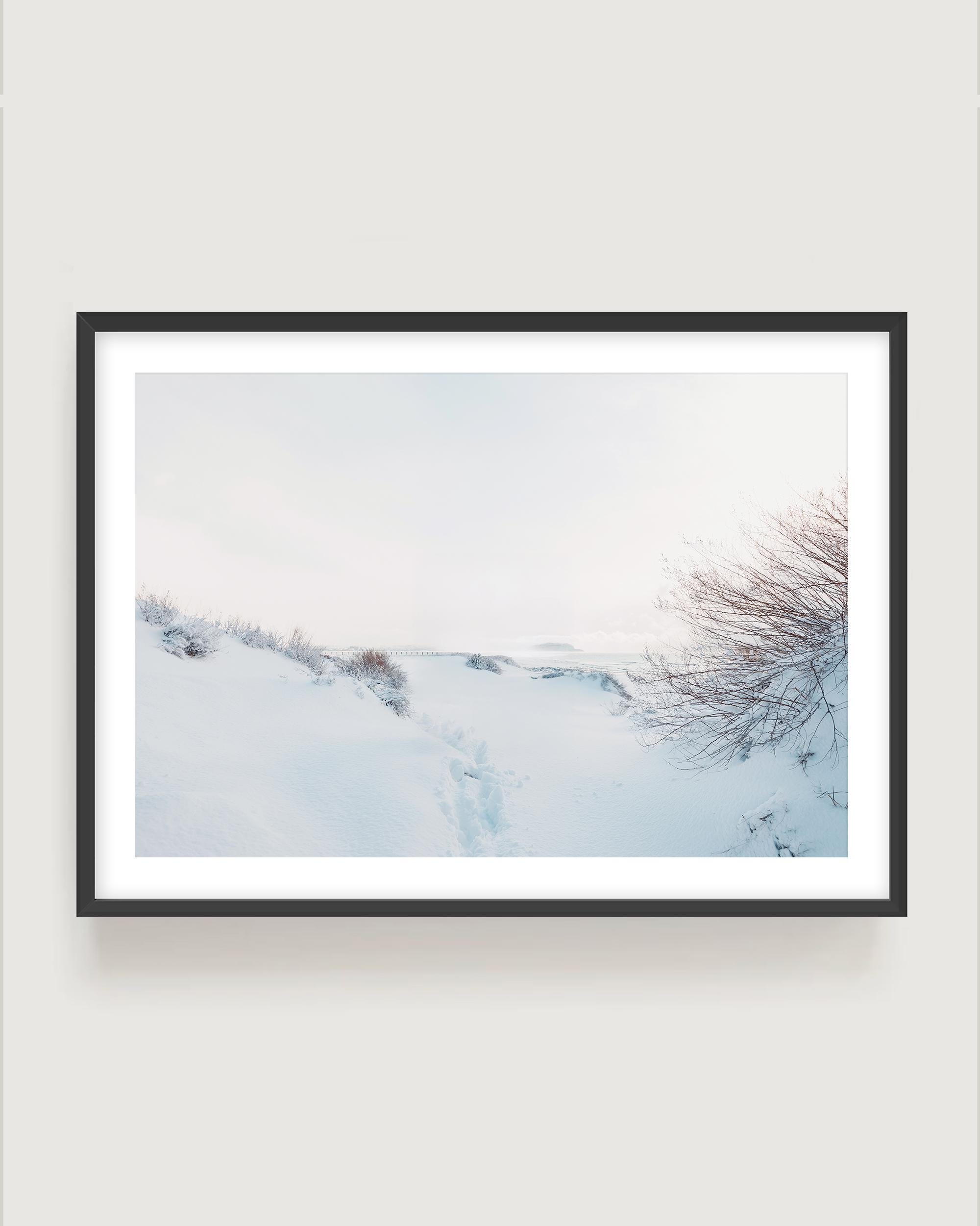 Winter Beach Wall Art: Coastal Photography Print, Minimalist Snow Landscape Fine Art