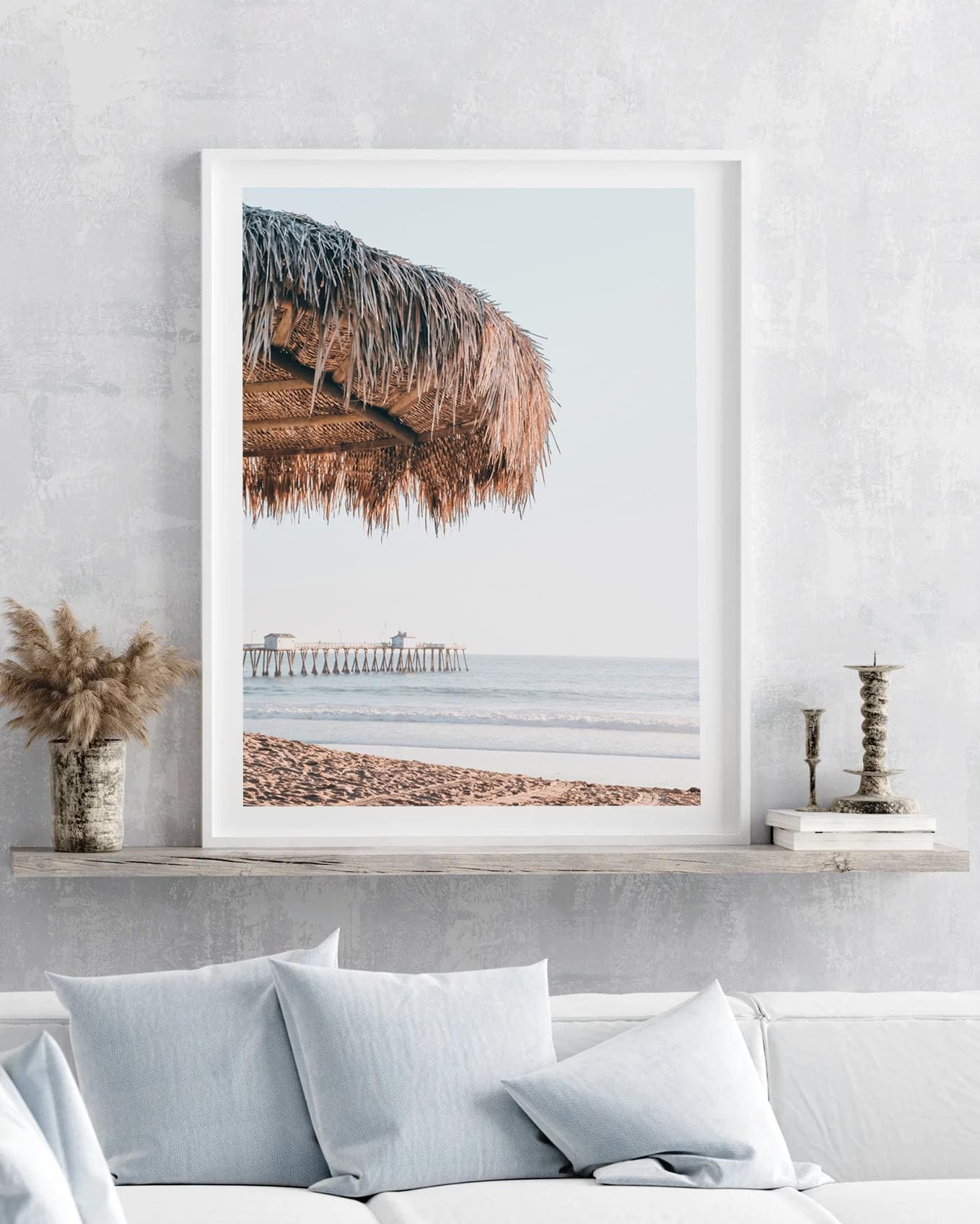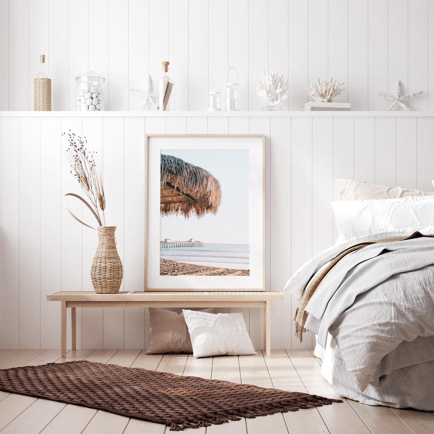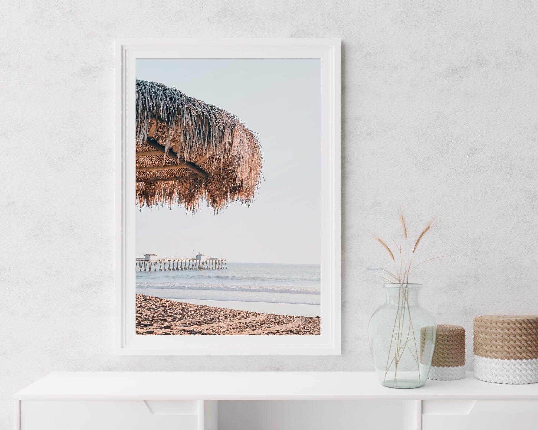 Beach Umbrella Wall Art: Boho Coastal Decor, Neutral Beach Photography