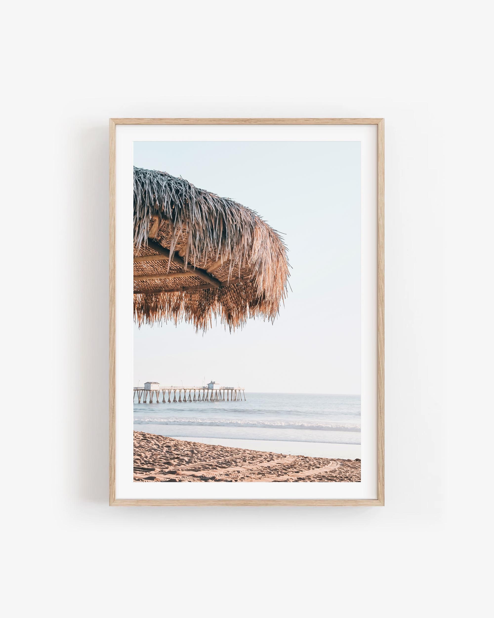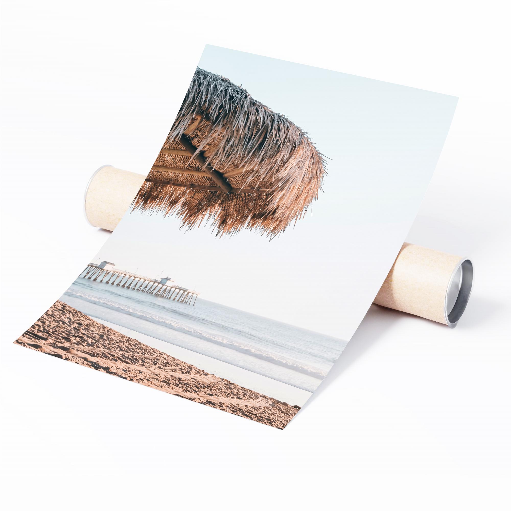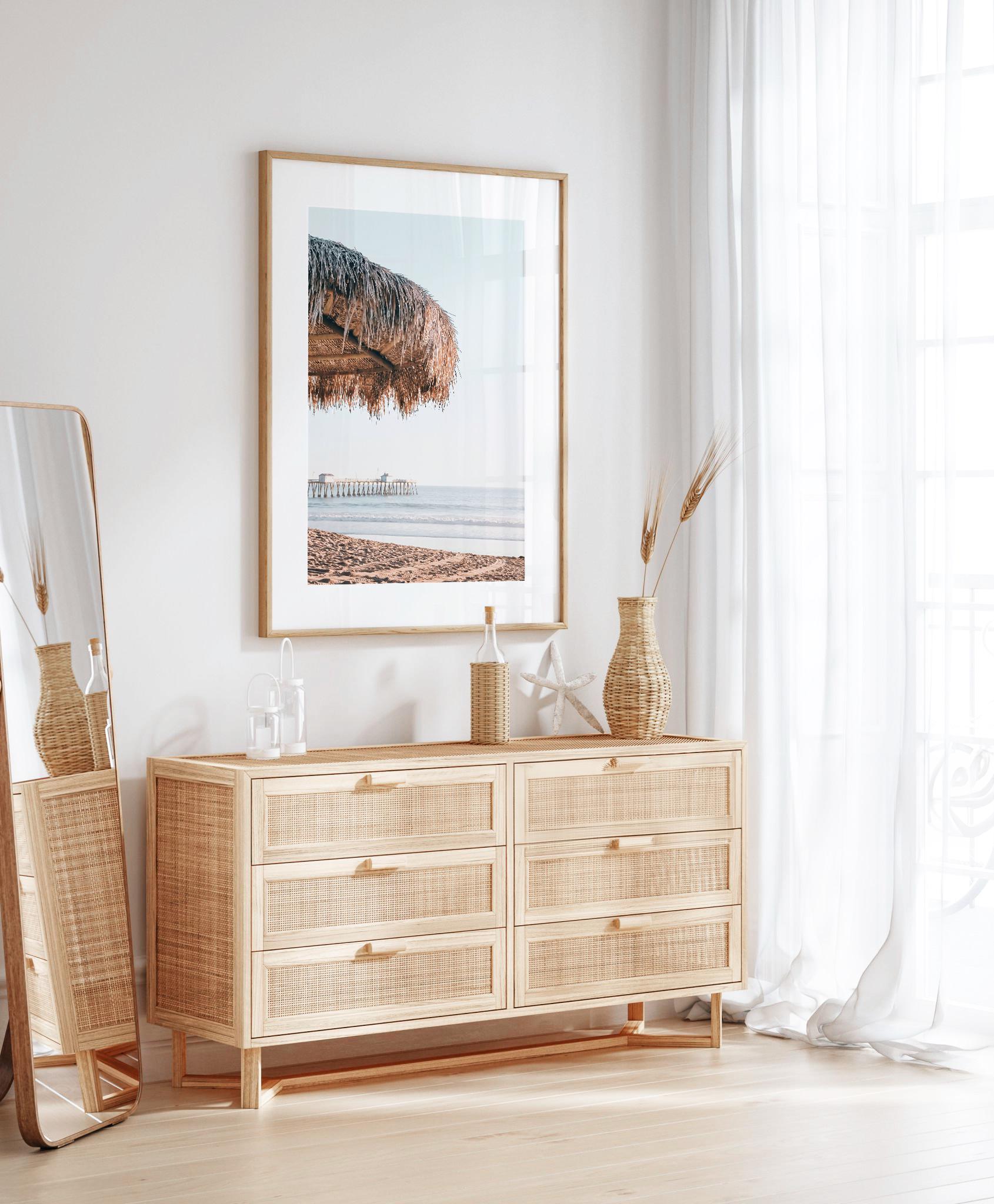 Beach Umbrella Wall Art: Boho Coastal Decor, Neutral Beach Photography