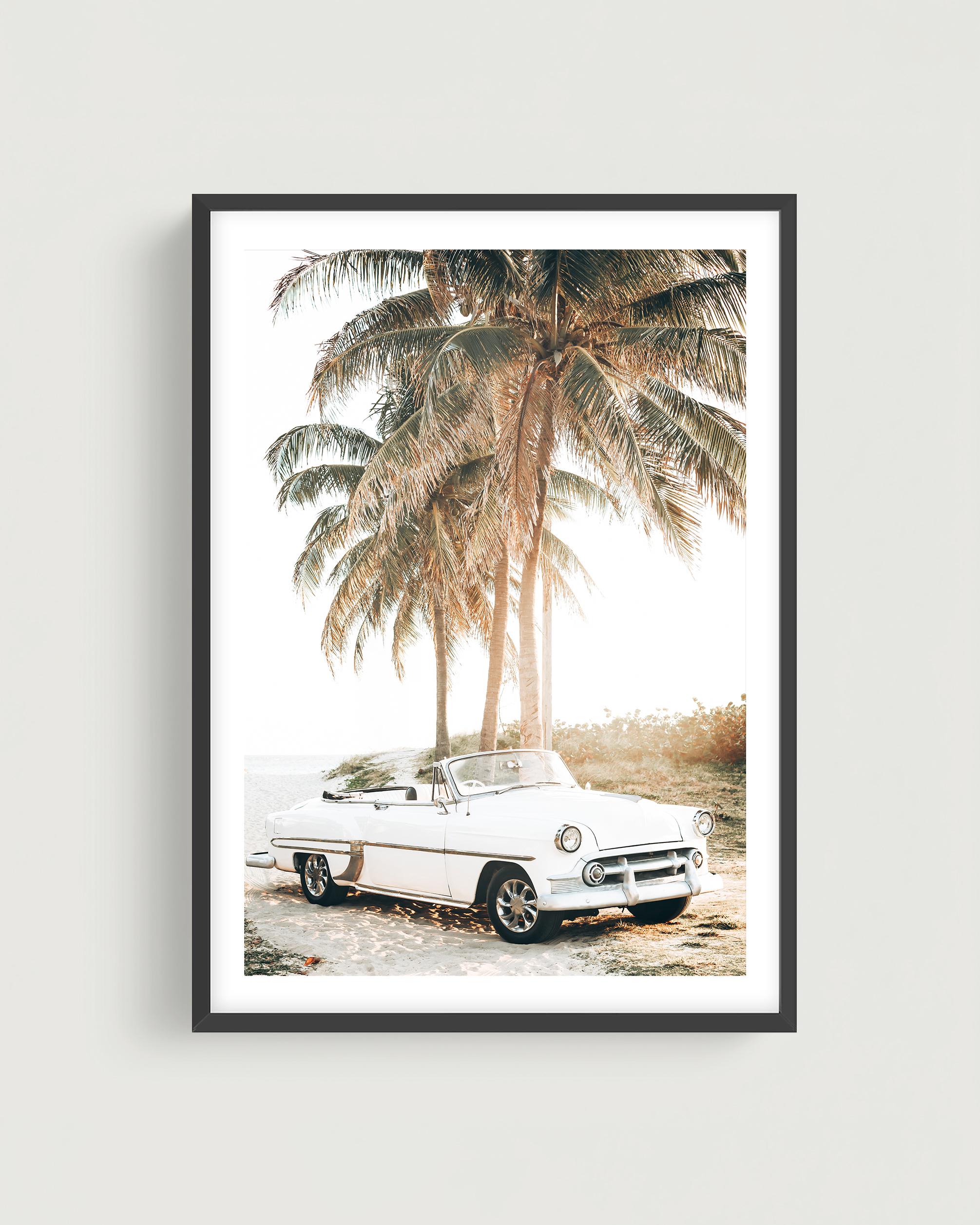 Coastal Wall Art Print: Vintage Car by the Beach, Boho Tropical Photography