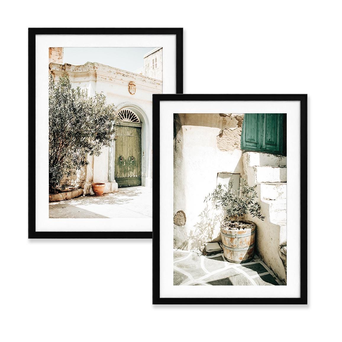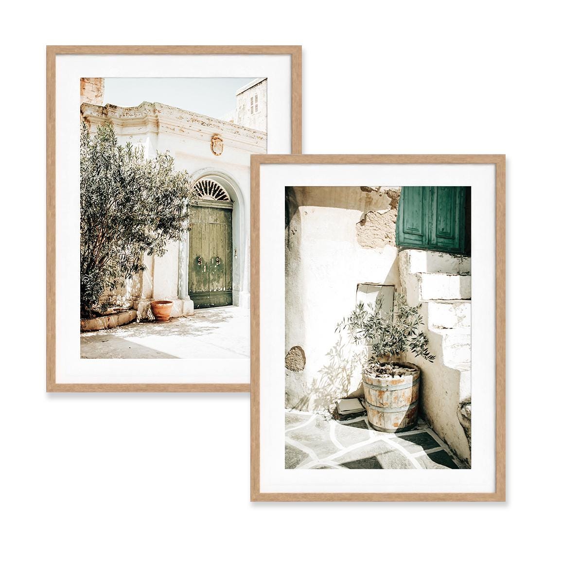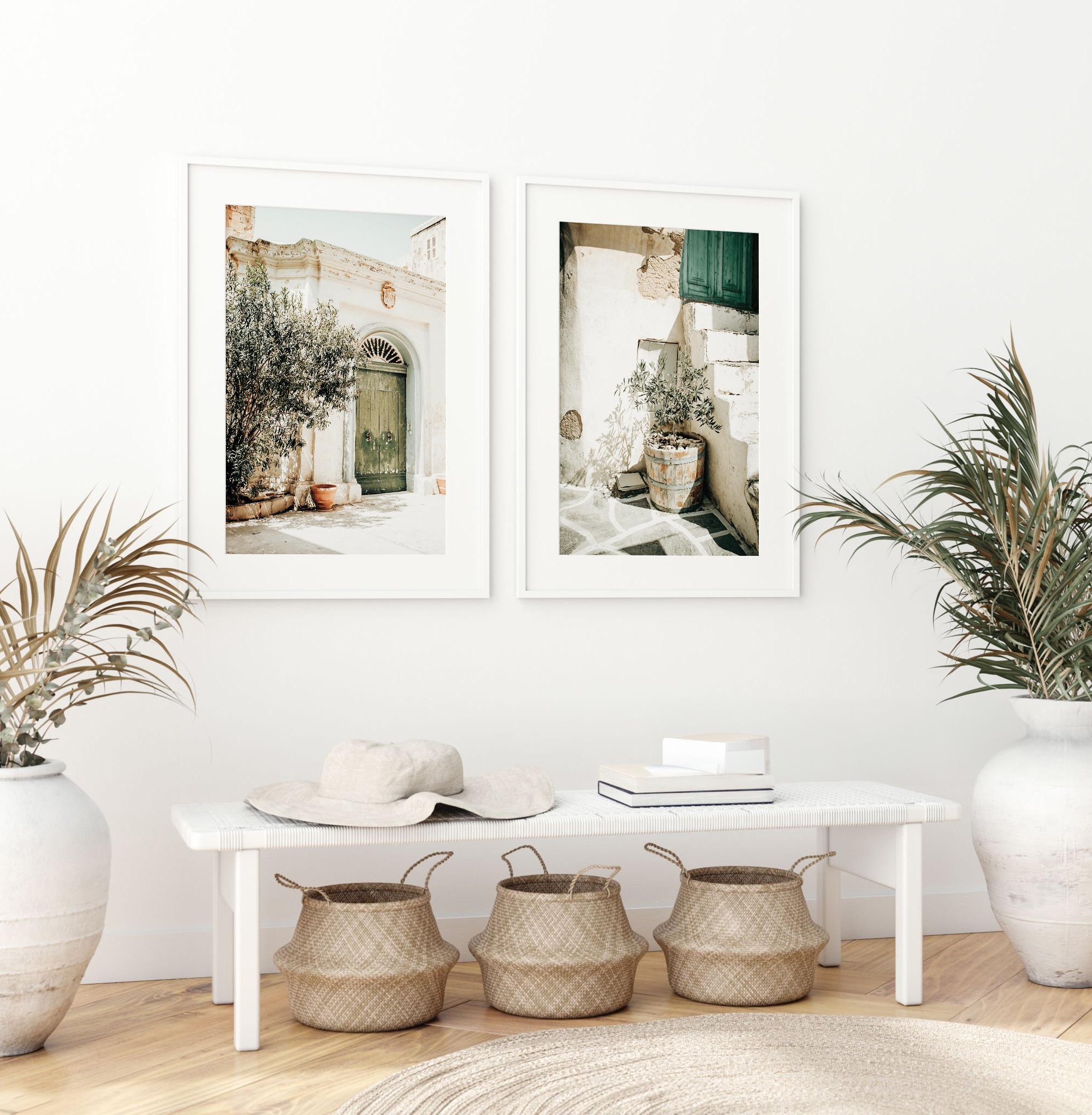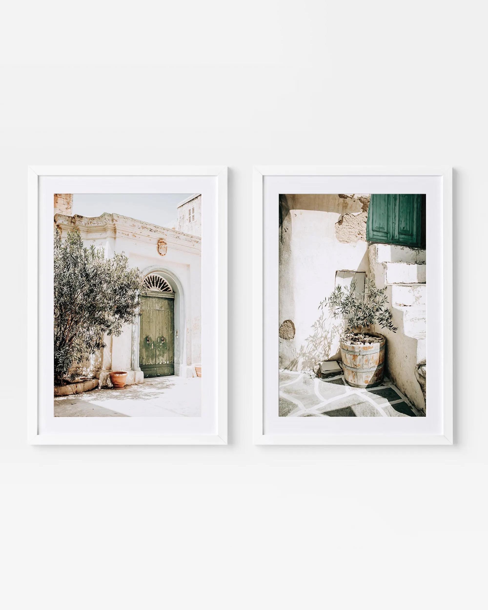 Bring a touch of Mediterranean calm to your home with this warm, rustic wall art set. These fine art prints capture the beauty of sunlit stone walls, weathered green doors, and olive trees. Effortlessly timeless, this artwork adds natural texture and serenity to coastal, farmhouse, or modern interiors.