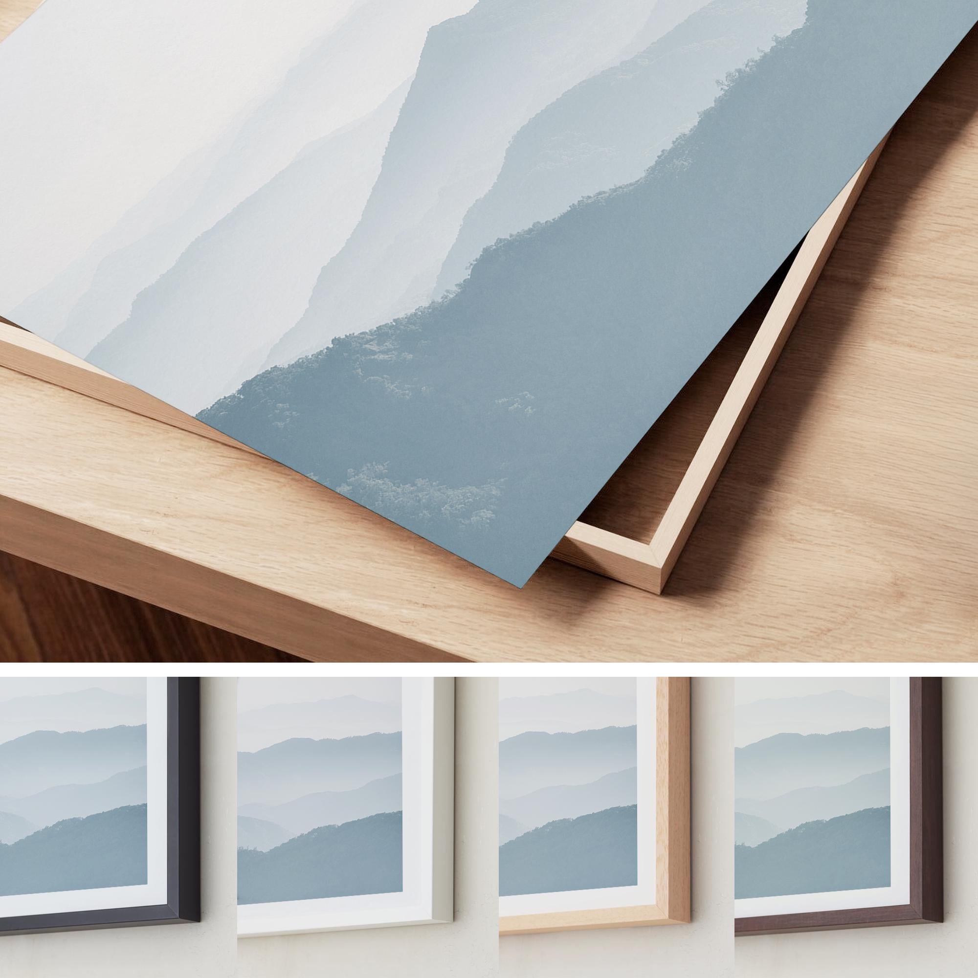 Misty Mountain Fine Art Print: Serene Blue Landscape Wall Art for Calm Interiors