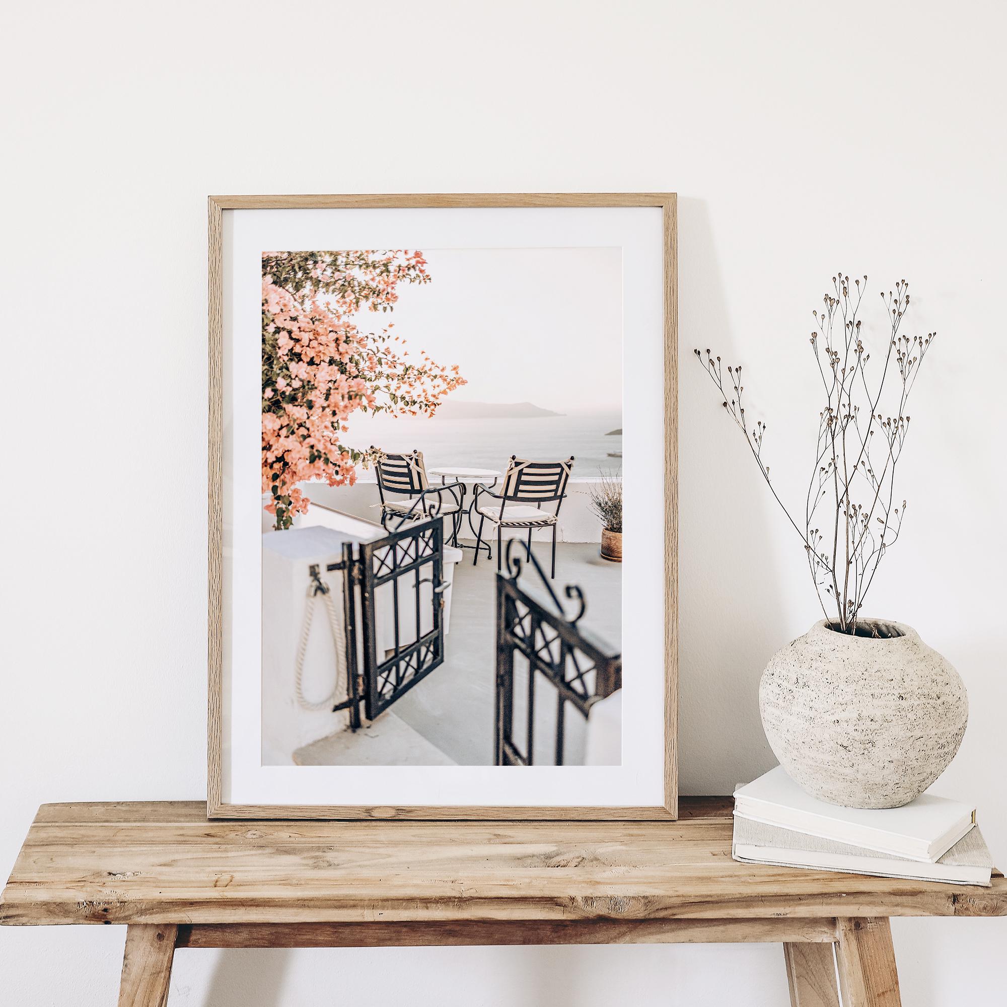 Santorini Wall Art: Mediterranean Architecture Print, Greece Coastal Photography
