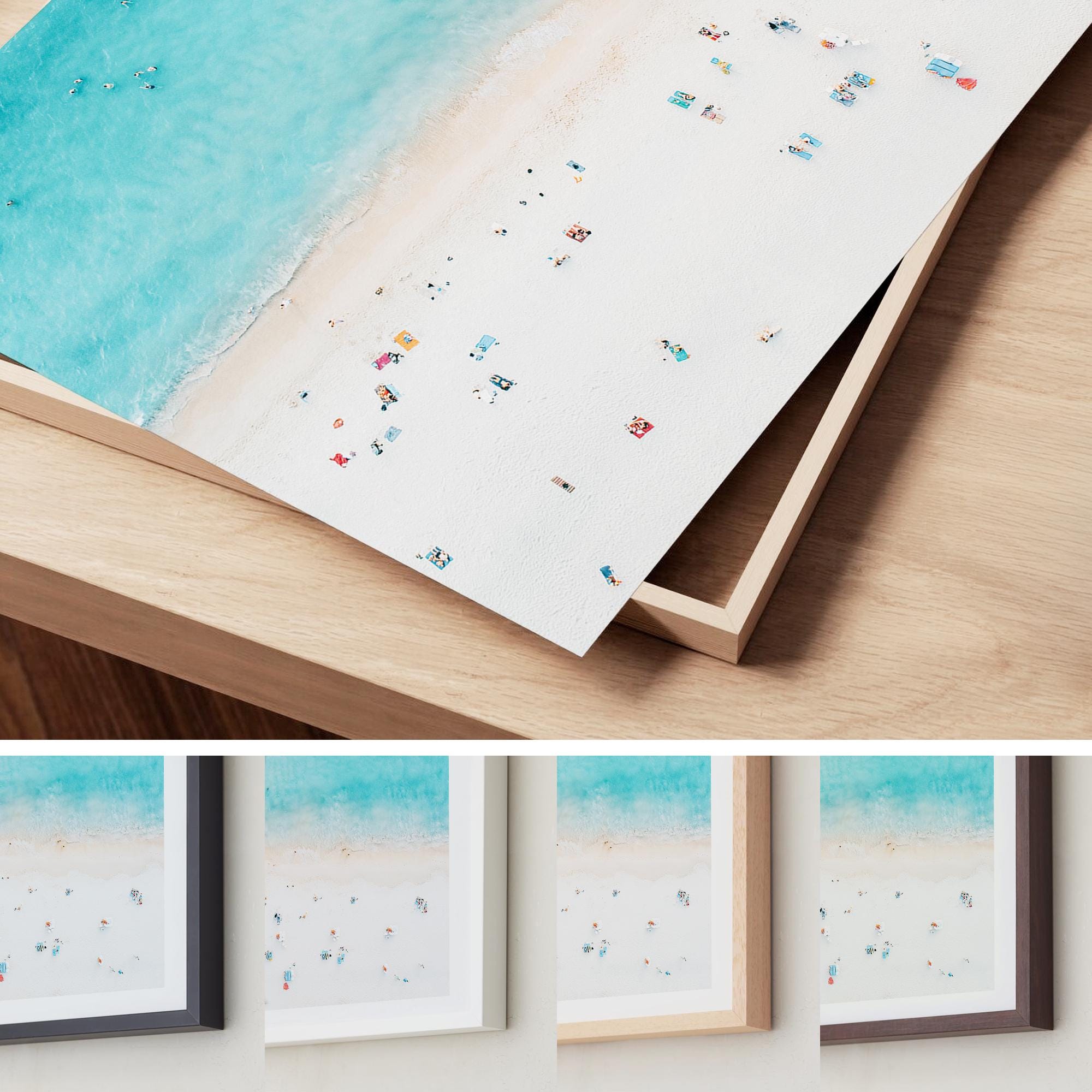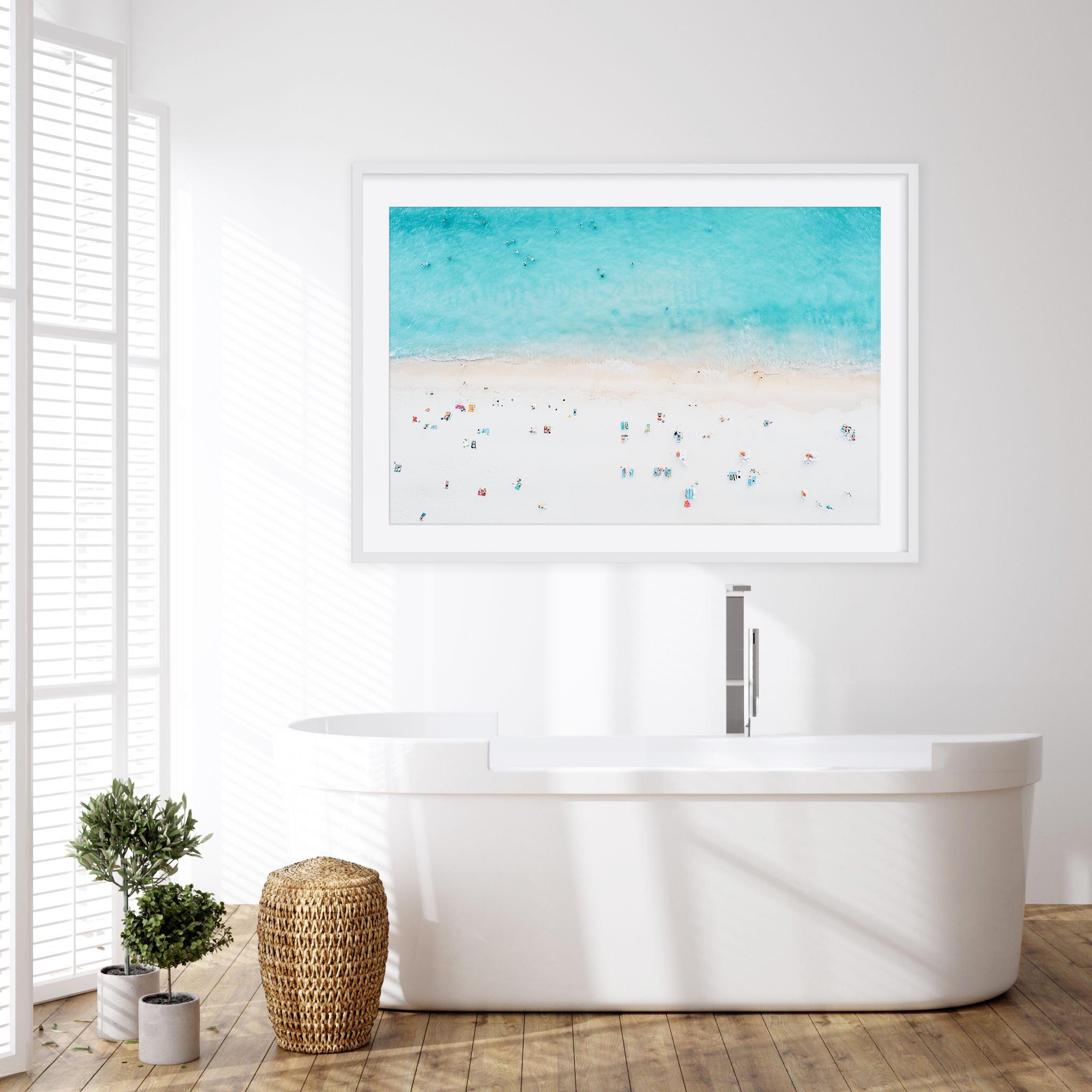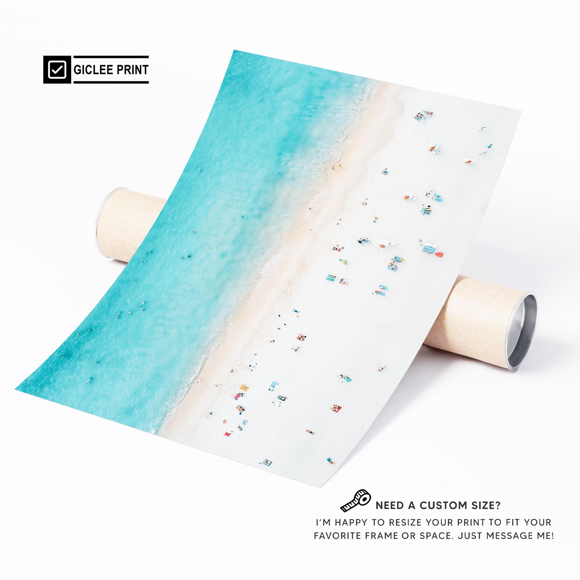 This airy beach aerial print instantly brings a calm, sun-washed vibe to your space. The soft turquoise water and minimal shoreline details create a clean, coastal look that blends effortlessly with modern, beachy, or relaxed interior styles.