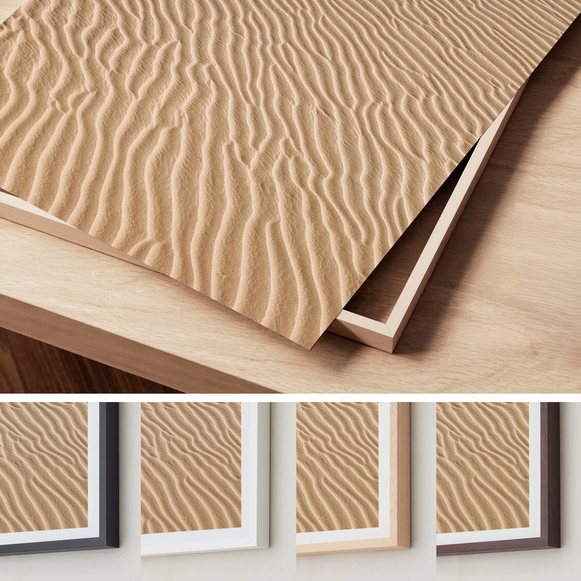 Elegant and calming, this neutral desert print brings soft texture and warm minimalism into any space. The gentle dune lines and sun-washed beige tones enrich your room without overpowering it. The artwork pairs beautifully with light woods, stone accents, and subtle earthy palettes for an effortless, high-end finish.