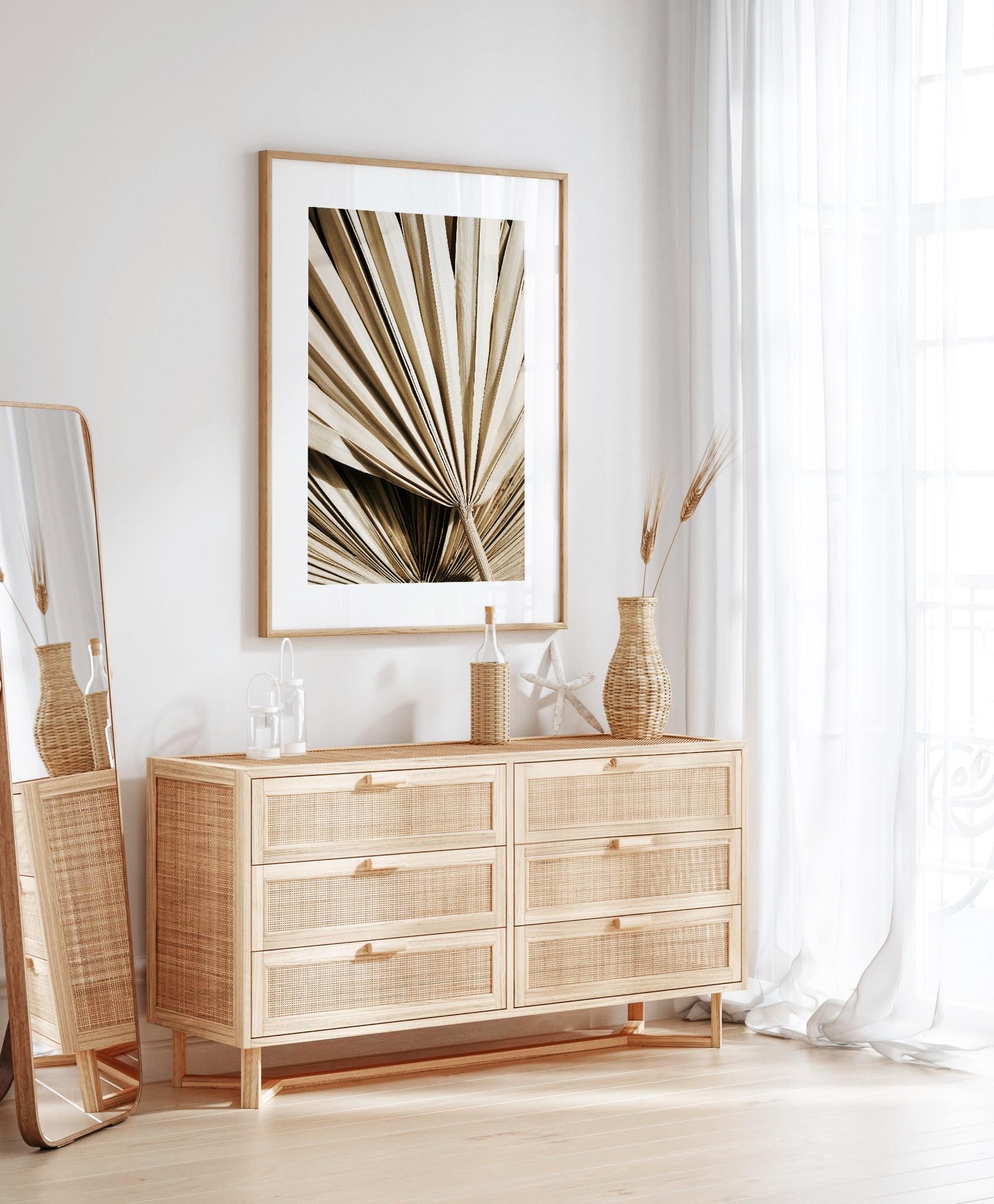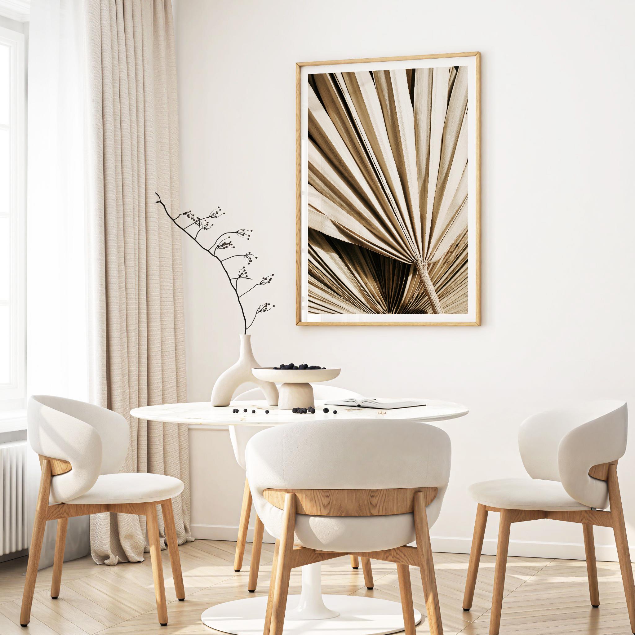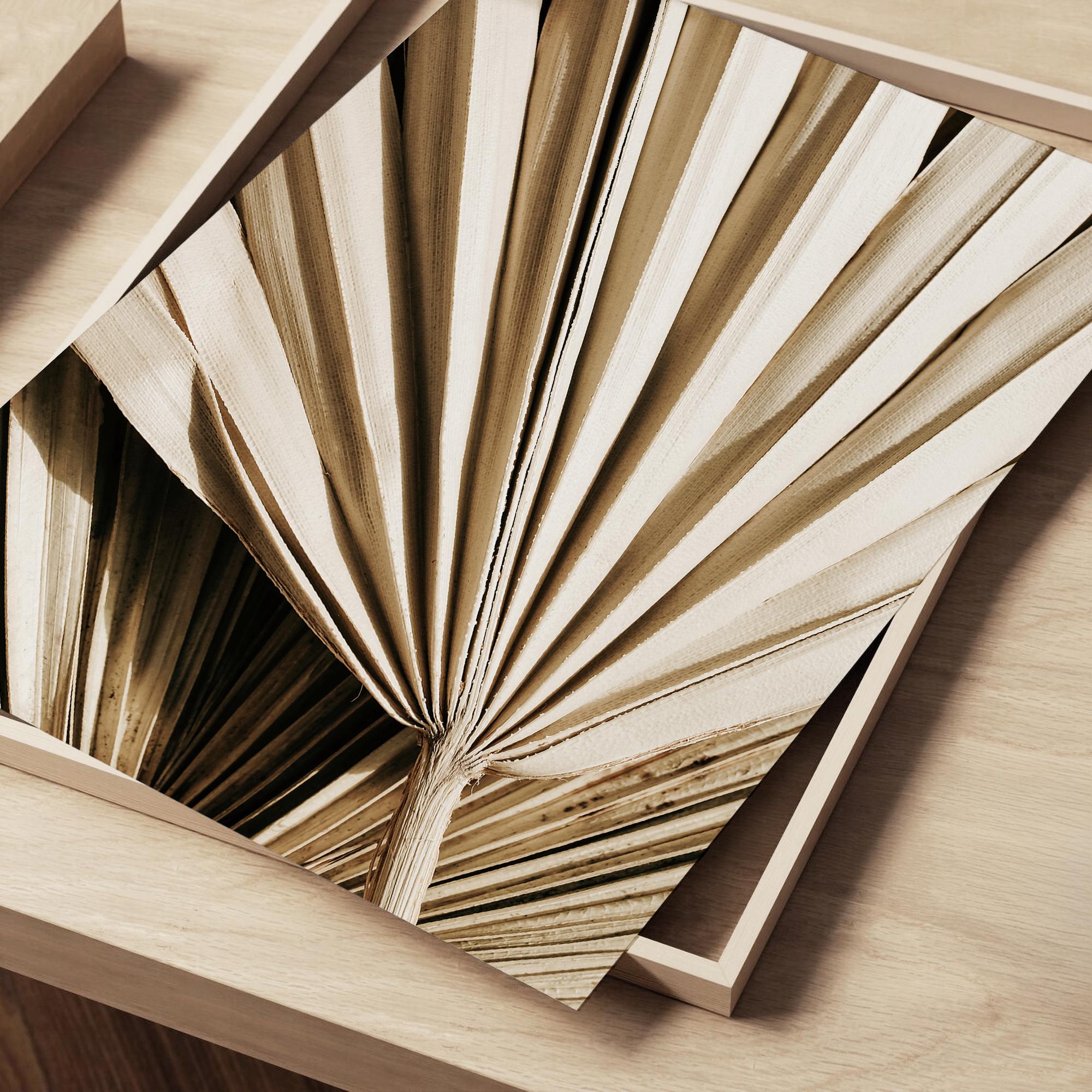 Elegant and earthy, this neutral palm artwork brings sculptural texture and effortless softness to any interior. Its clean lines and warm beige tones offer a calm, minimalist presence that enriches a room without overpowering it.