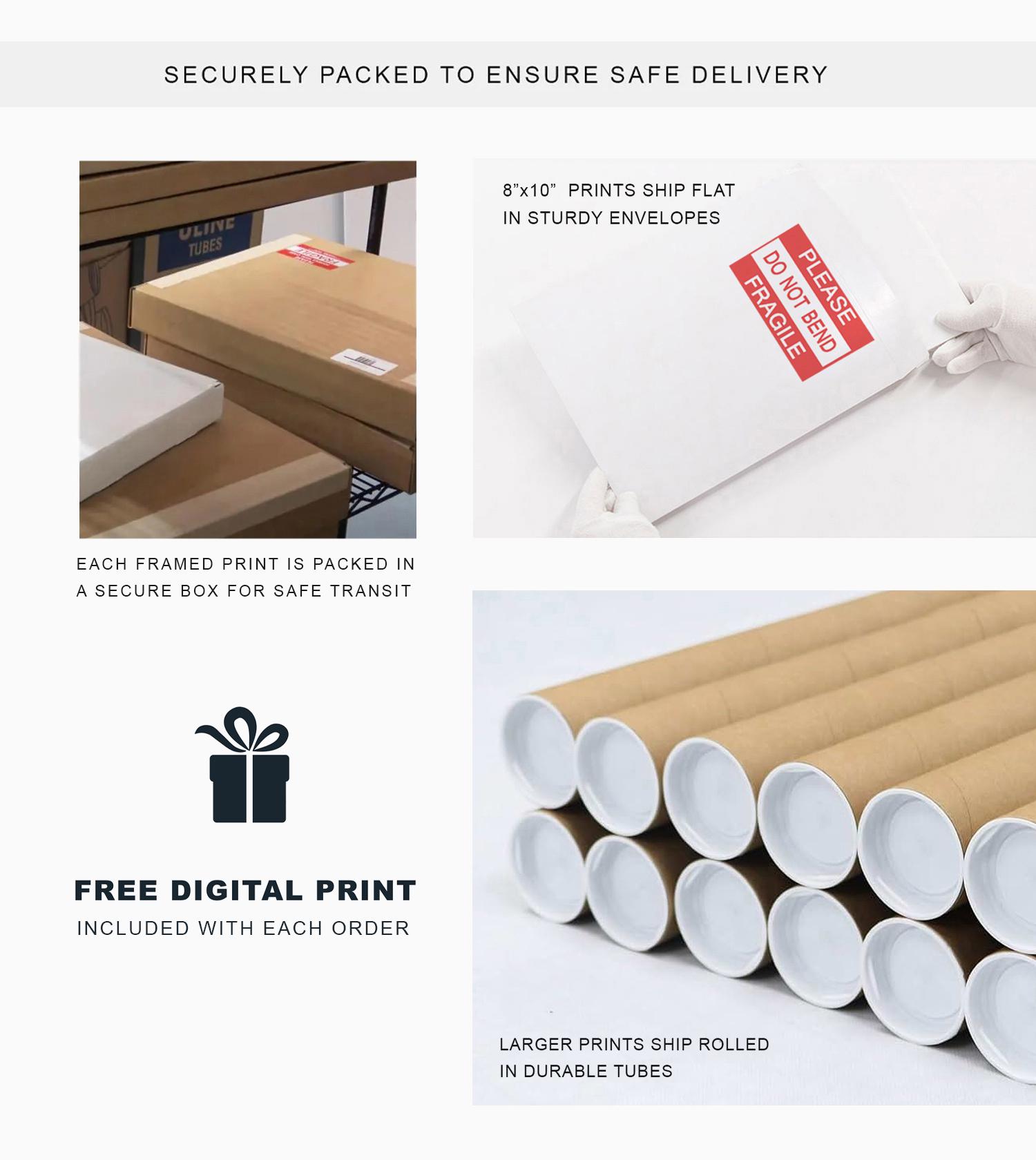 • Framed prints are made to order by our trusted framing lab and ship in 5–10 business days.