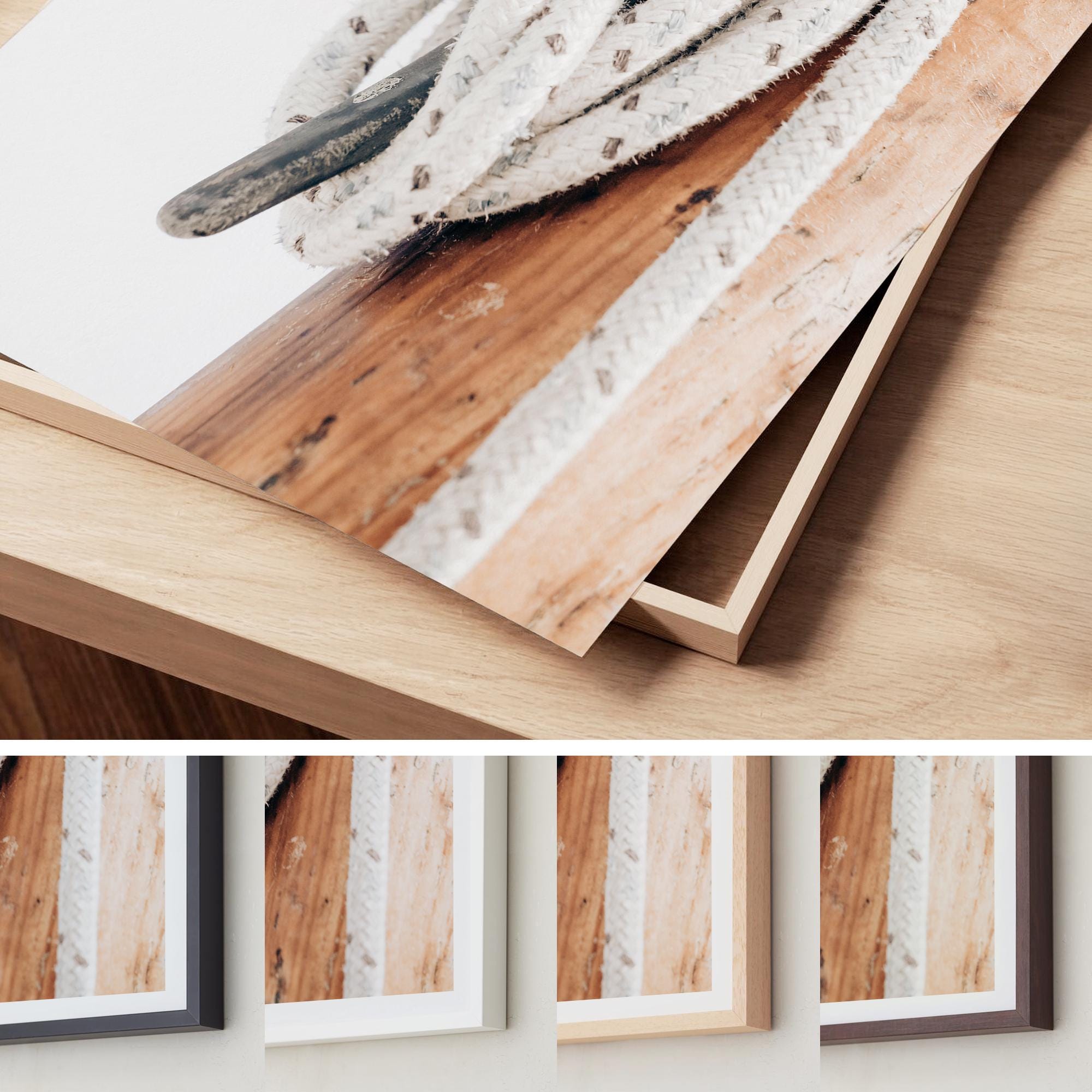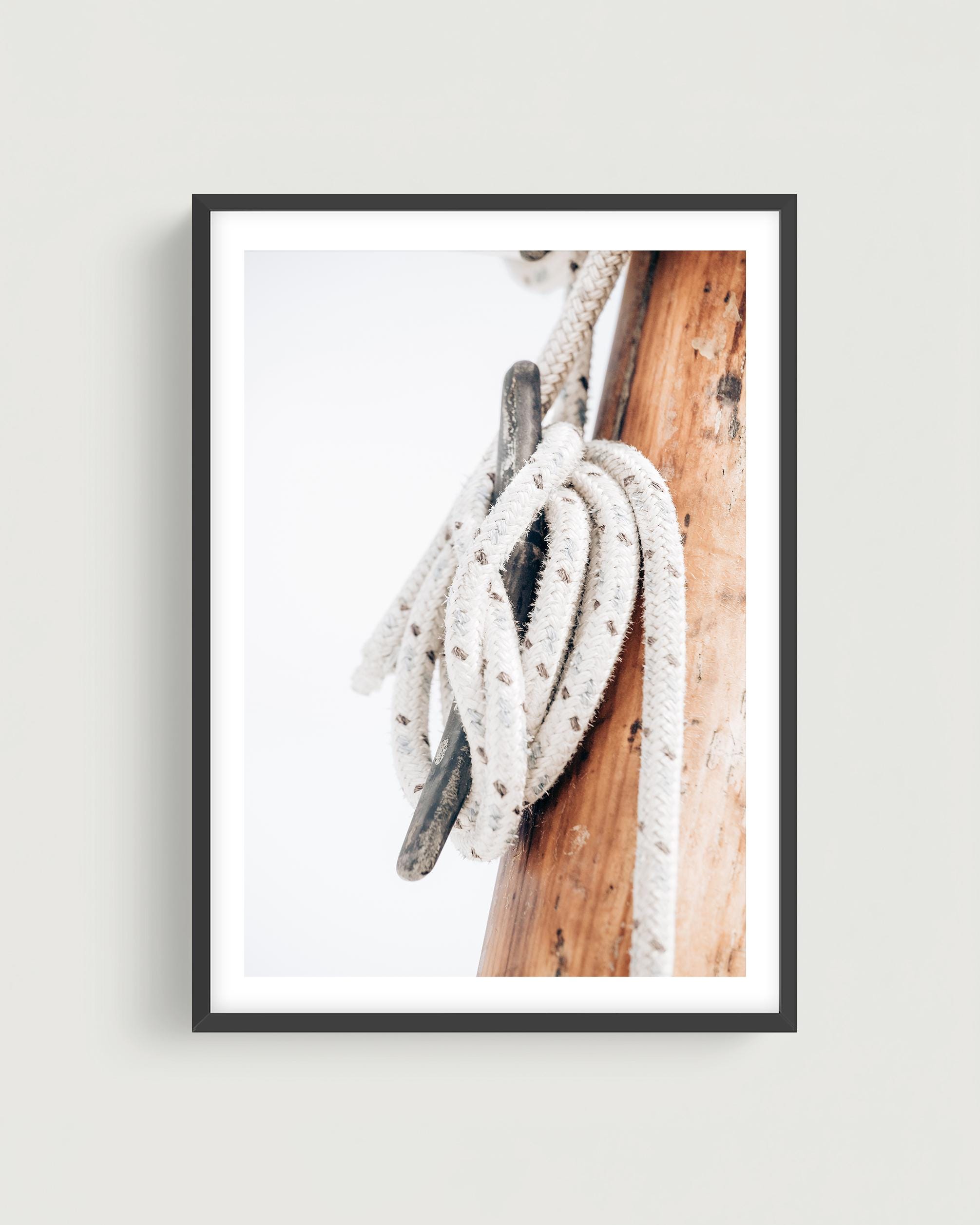 Soft and refined, this minimal nautical print captures the quiet beauty of handcrafted sailing elements. The warm wood tones and textured rope bring subtle coastal character making it perfect for calm, neutral interiors.