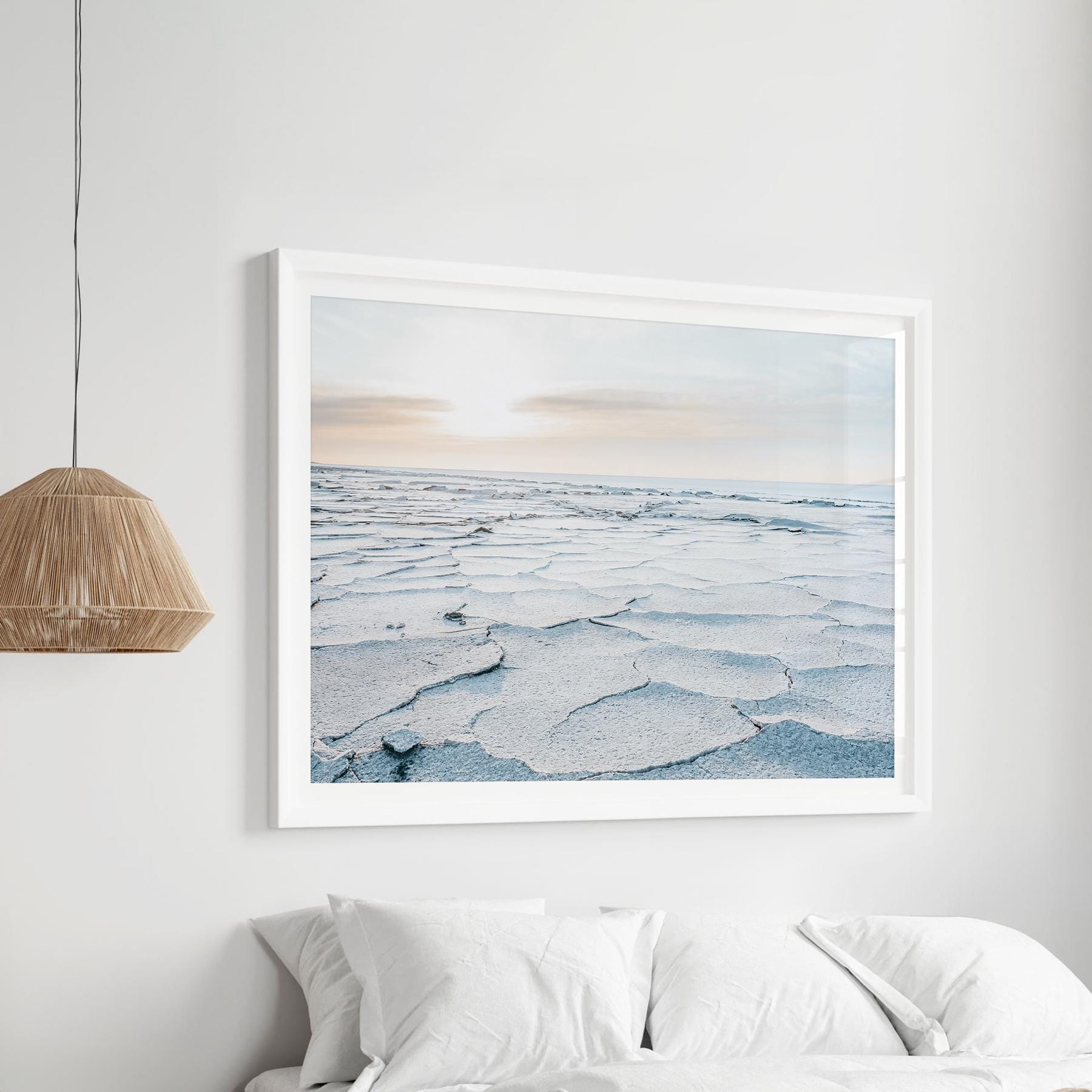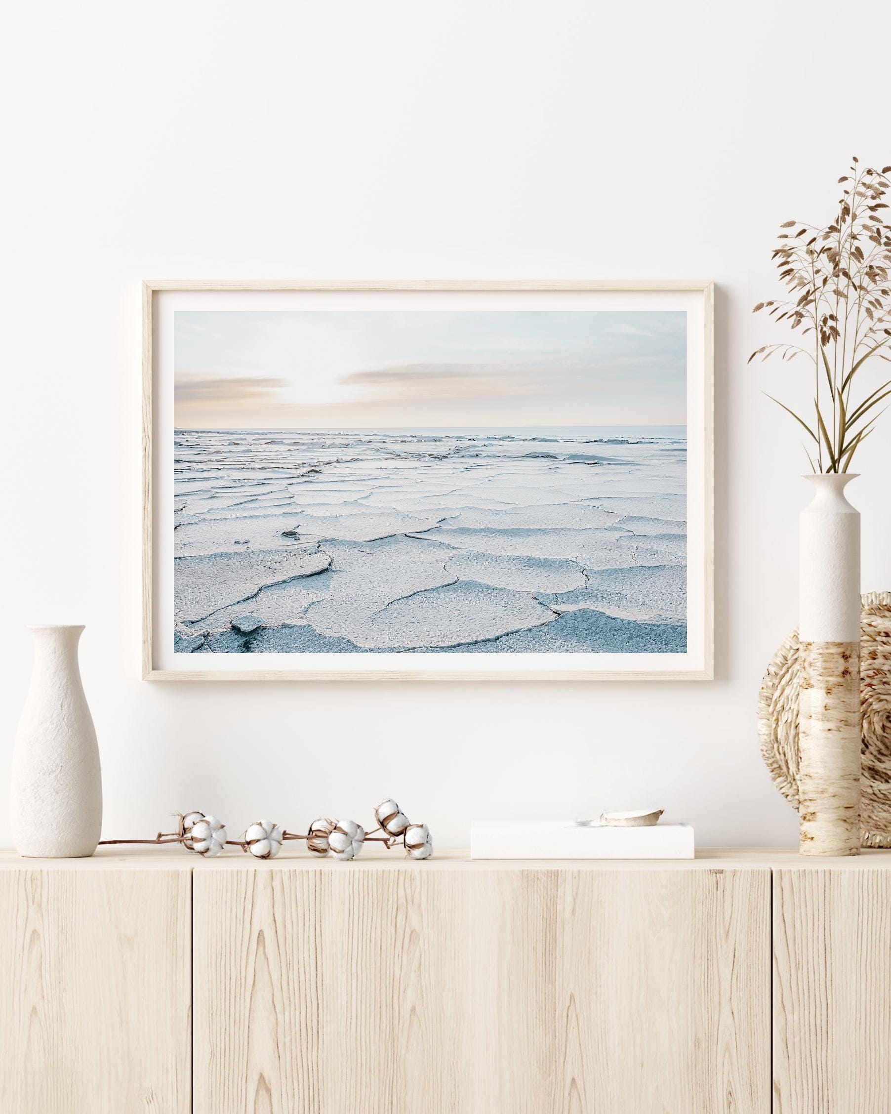 Elevate your space with the calm beauty of this soft desert landscape print. Subtle earth tones, gentle textures, and a pale horizon create a refined, tranquil atmosphere that blends seamlessly with modern coastal, organic, and neutral interiors.