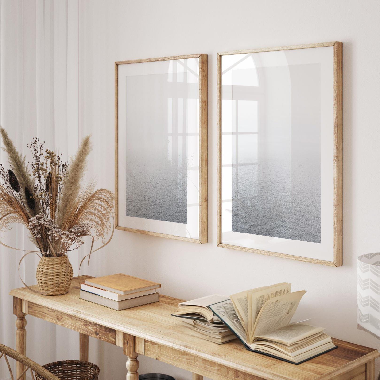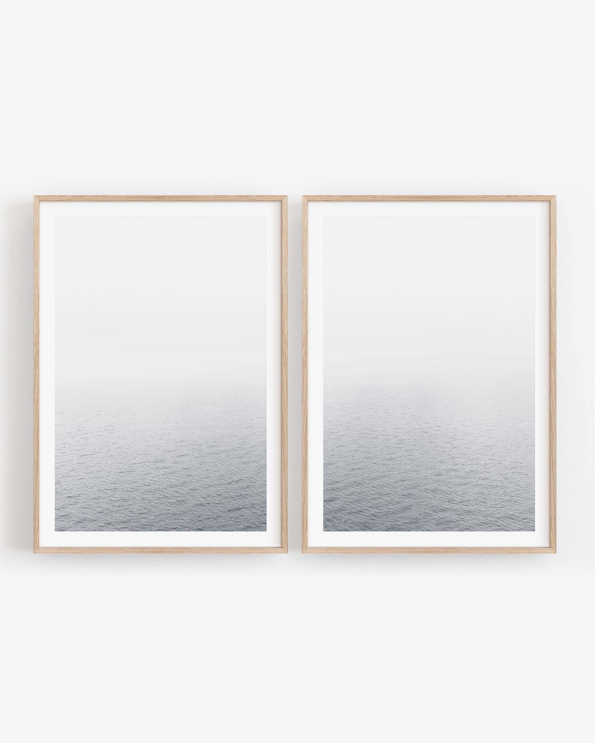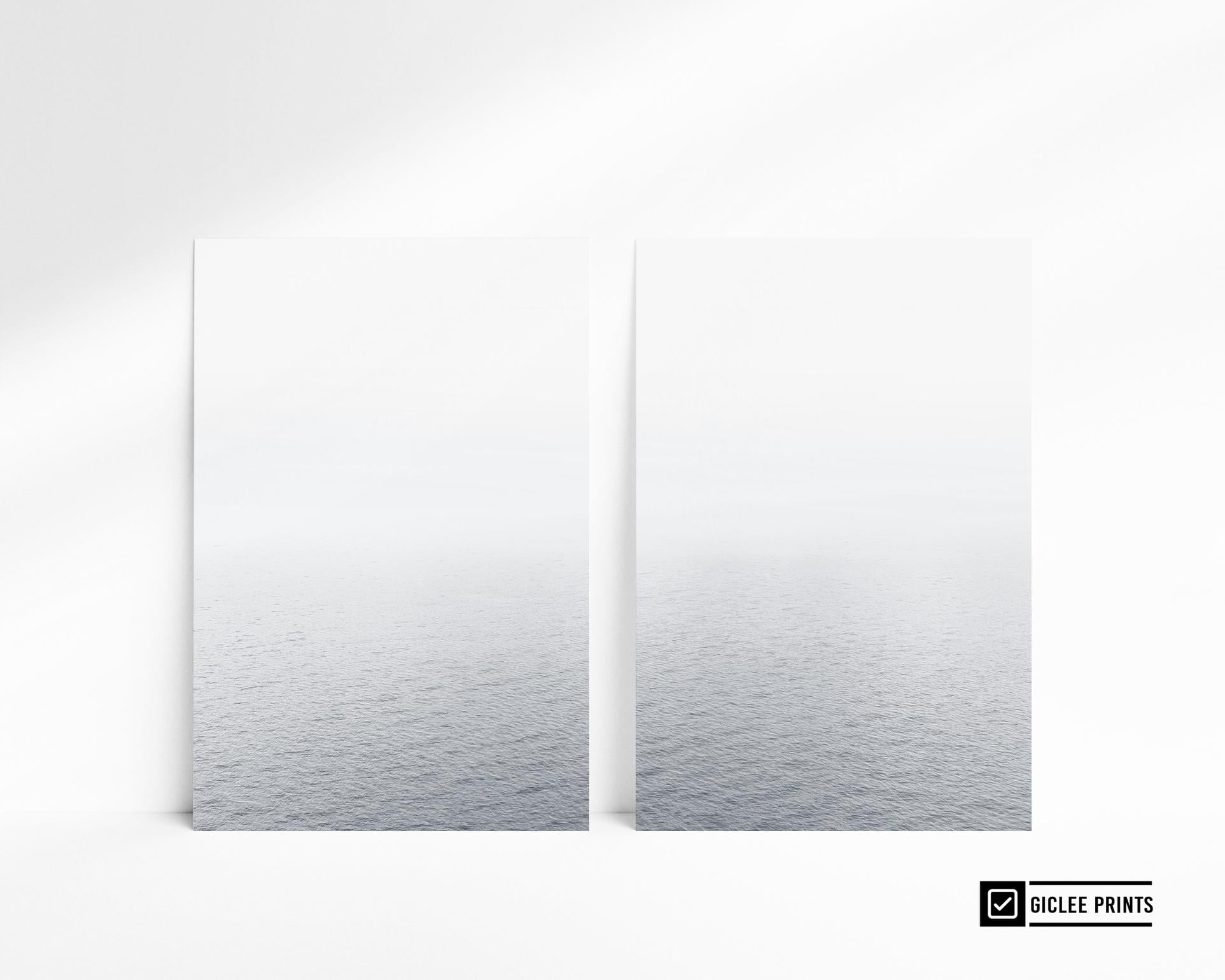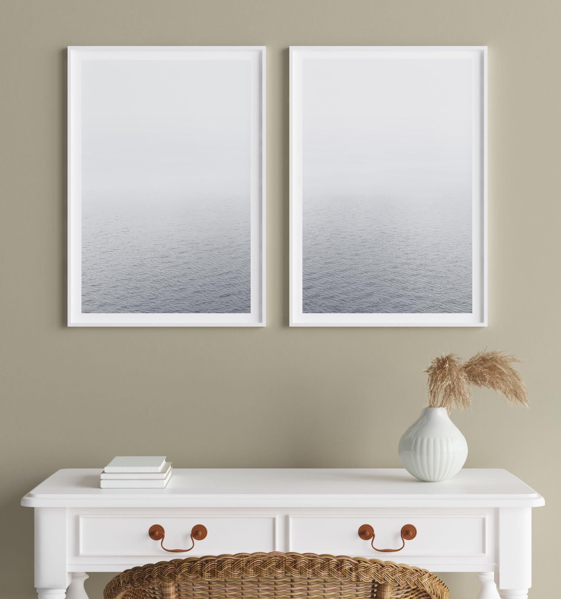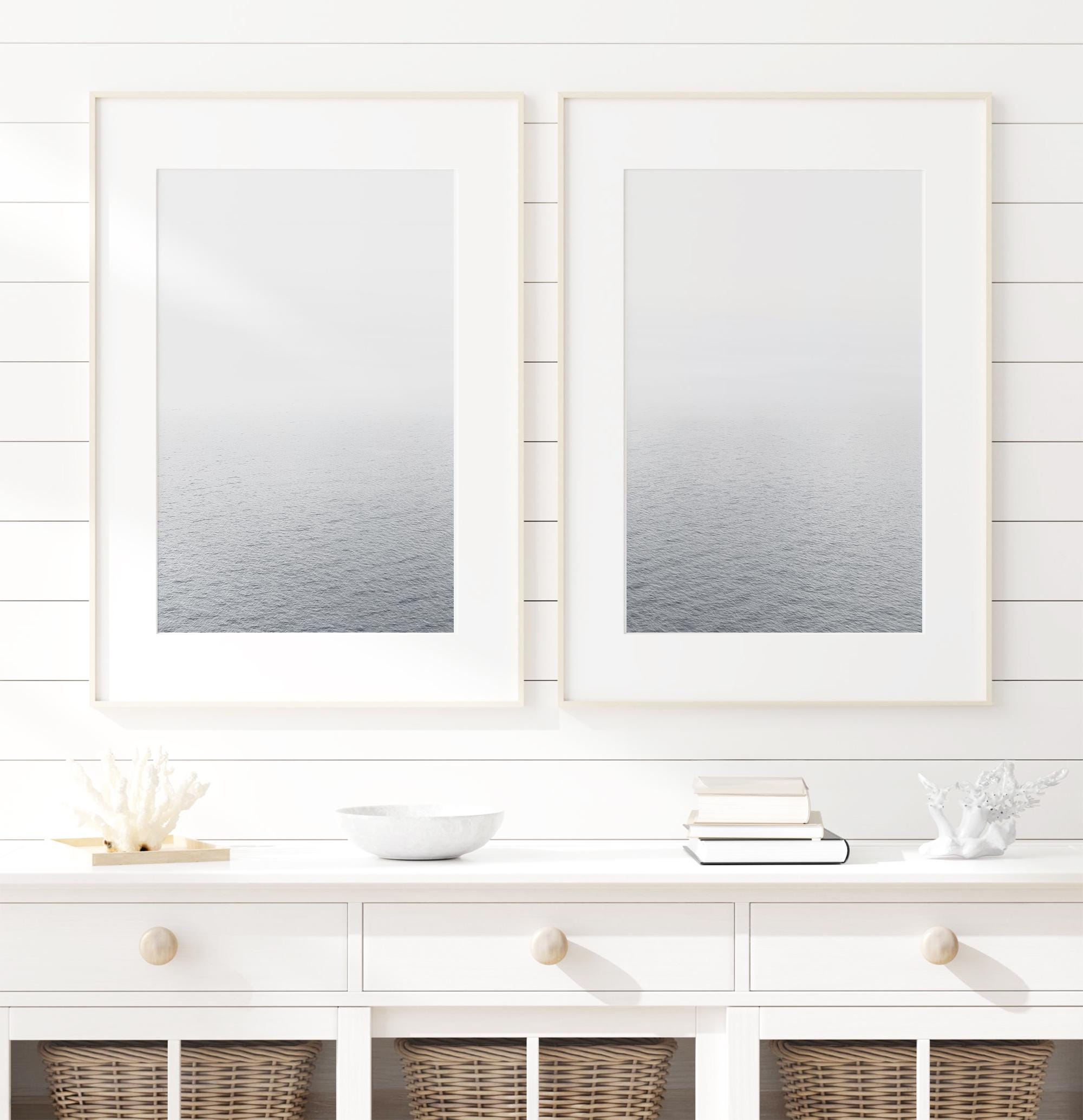 Bring a quiet sense of calm to your interior with this soft, mist-washed ocean diptych. Designed with a monochrome neutral palette, it delivers a refined balance of texture and negative space that blends seamlessly with linen, natural woods, and modern minimalist decor. Perfect for spaces that value tranquility, light, and understated luxury.