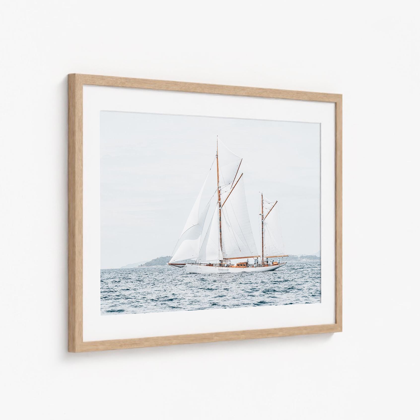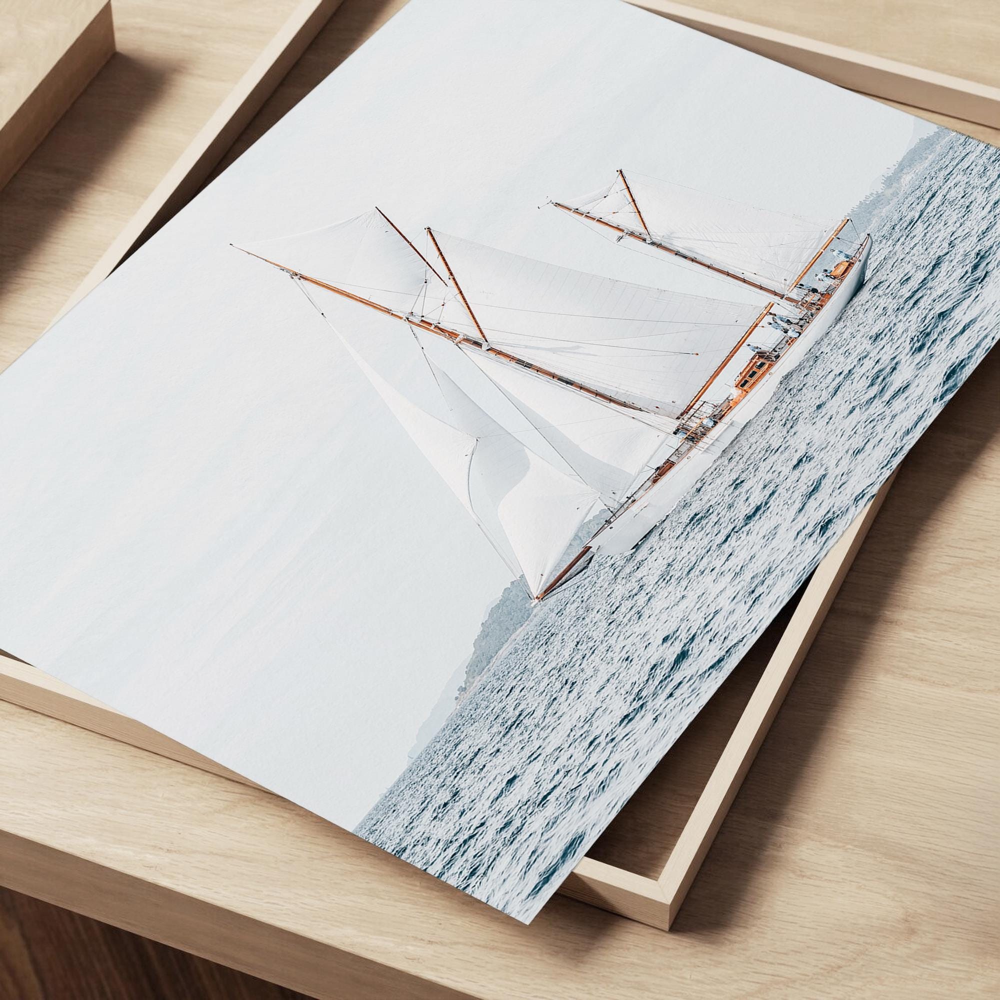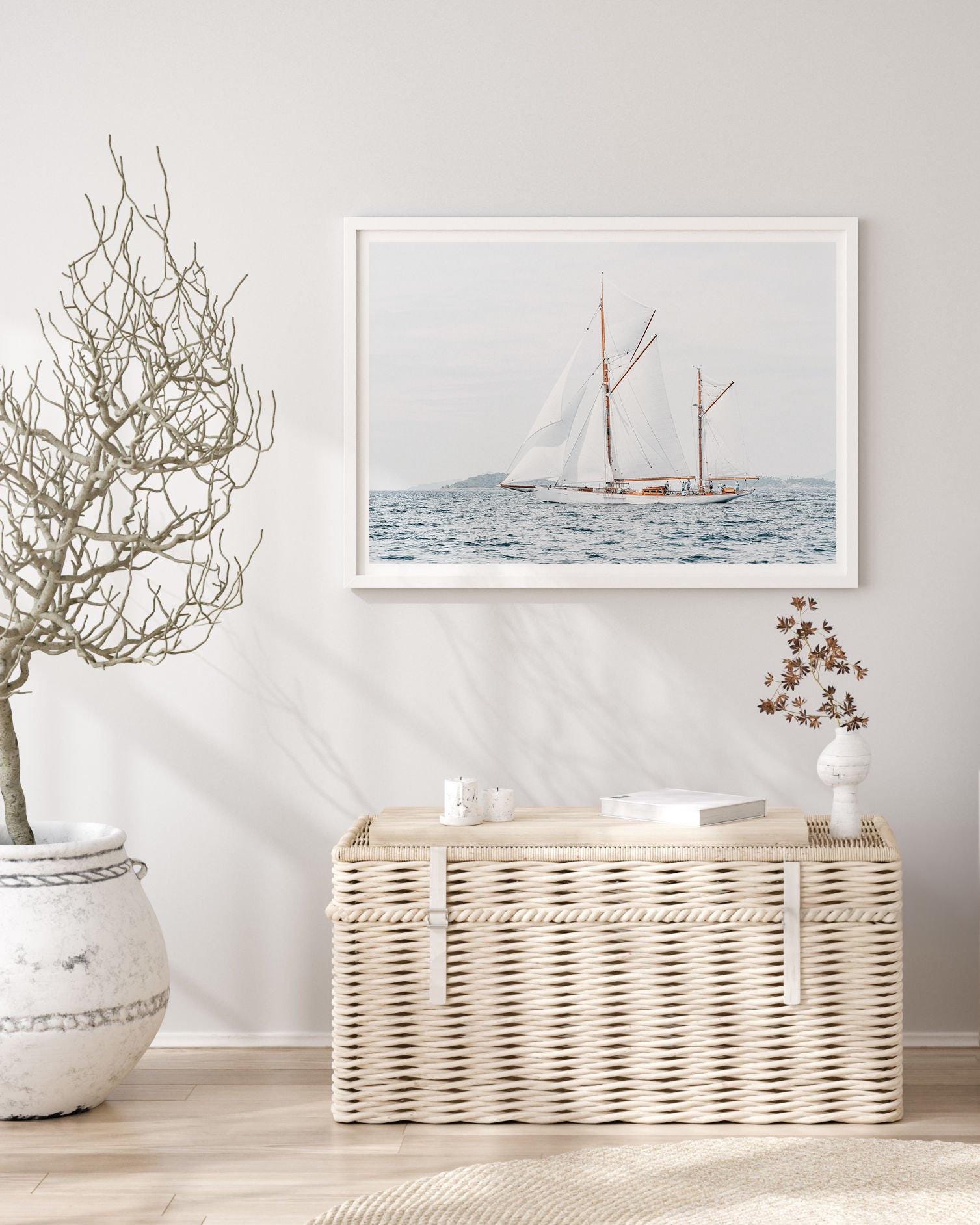 Soft, sun-washed tones and gentle coastal light bring a calming sense of openness to your space in this refined sailboat print. Perfect for adding a warm, airy touch to bedrooms or living rooms.