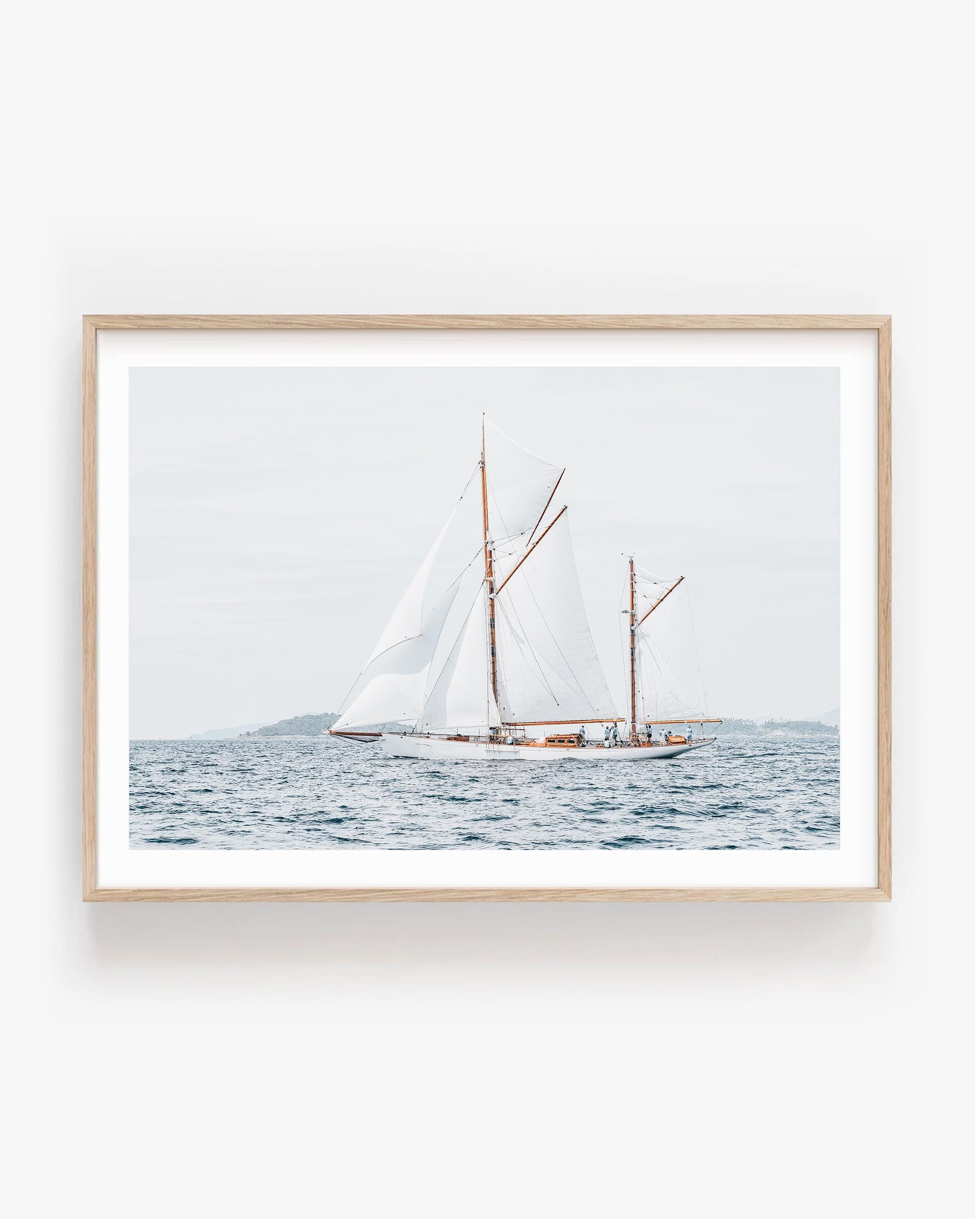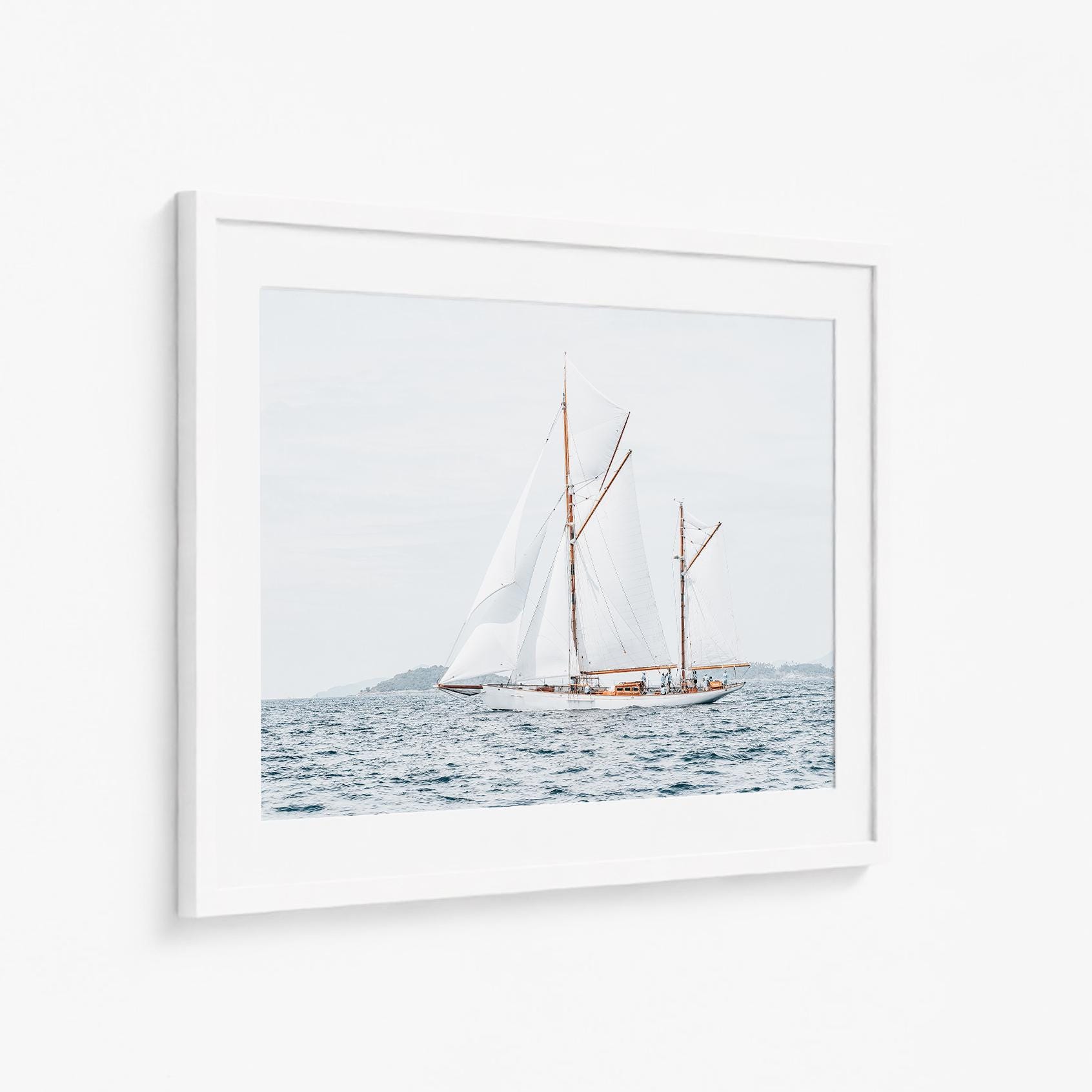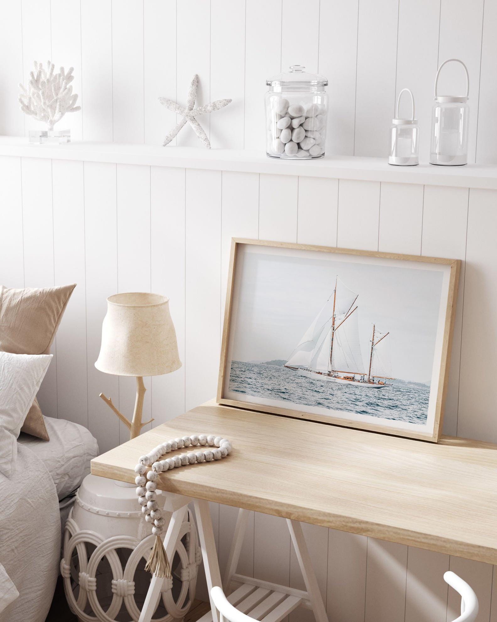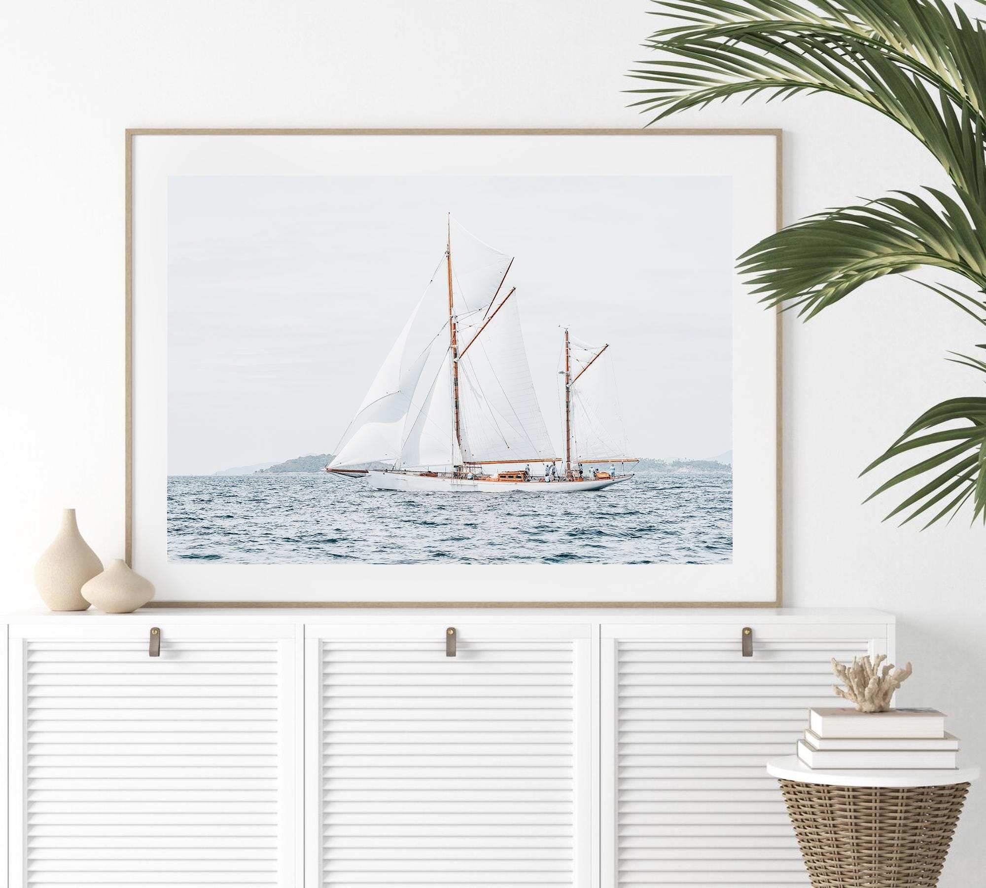 Soft, sun-washed tones and gentle coastal light bring a calming sense of openness to your space in this refined sailboat print. Perfect for adding a warm, airy touch to bedrooms or living rooms.