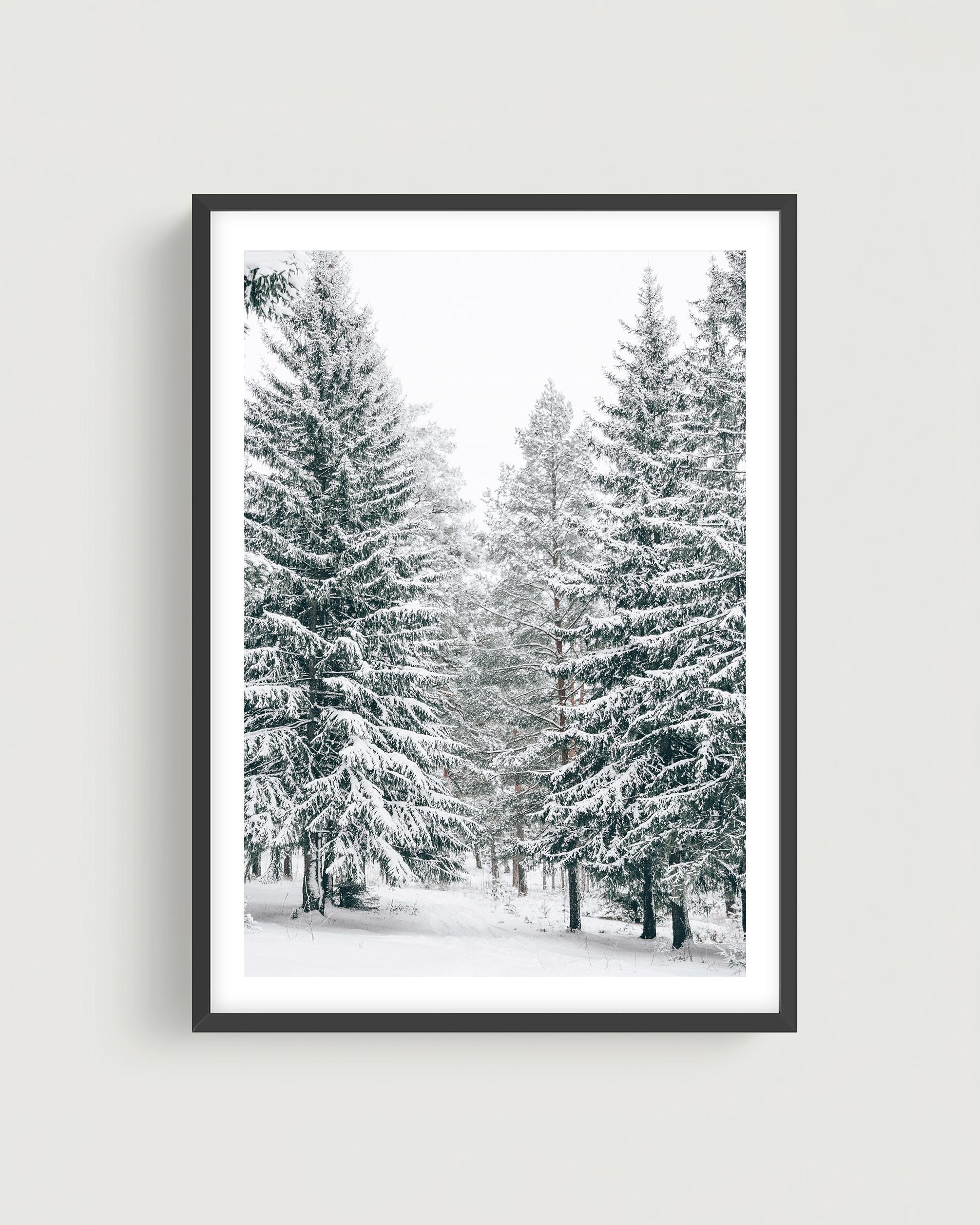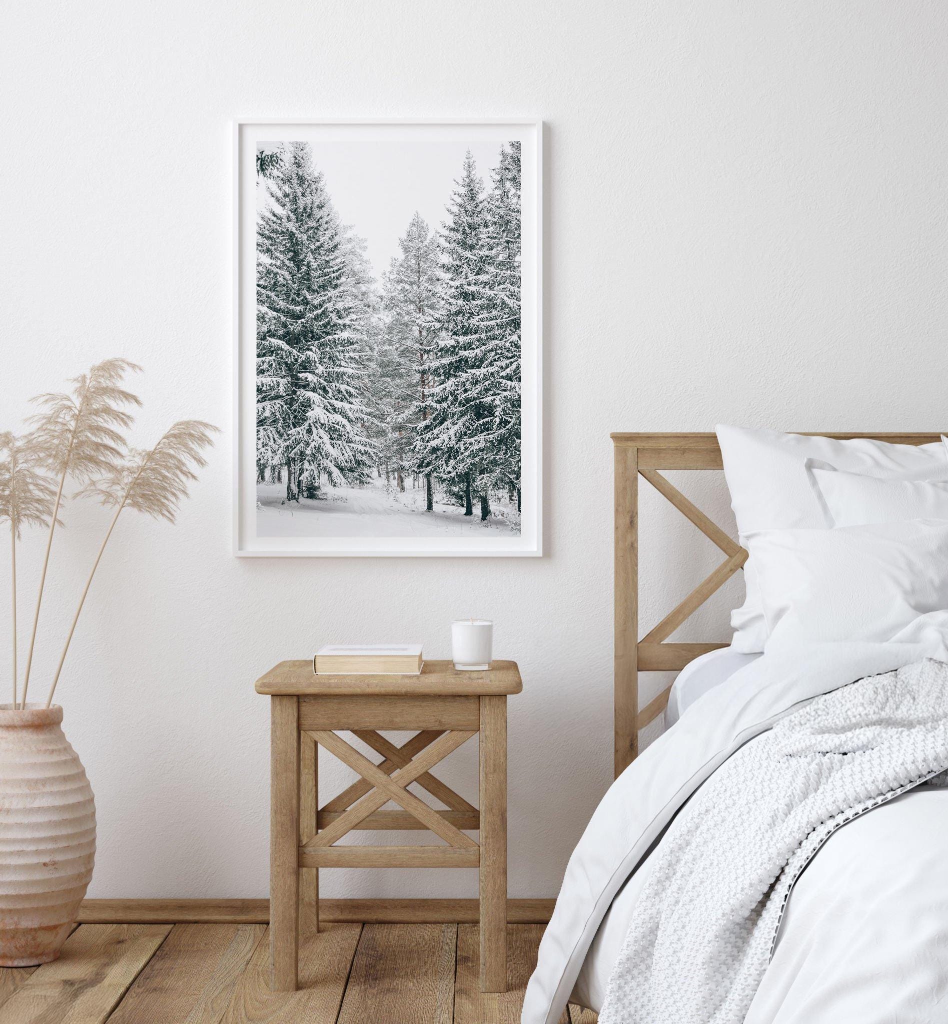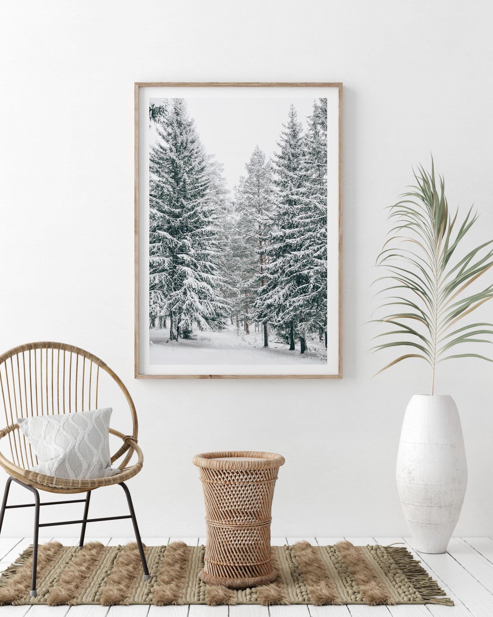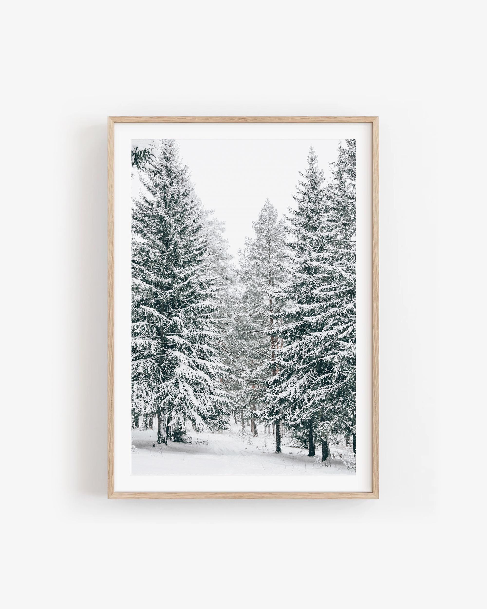 Bring a sense of calm winter stillness into your home with this softly toned snowy woodland print. Its serene composition lends effortless warmth and quiet luxury to any space.