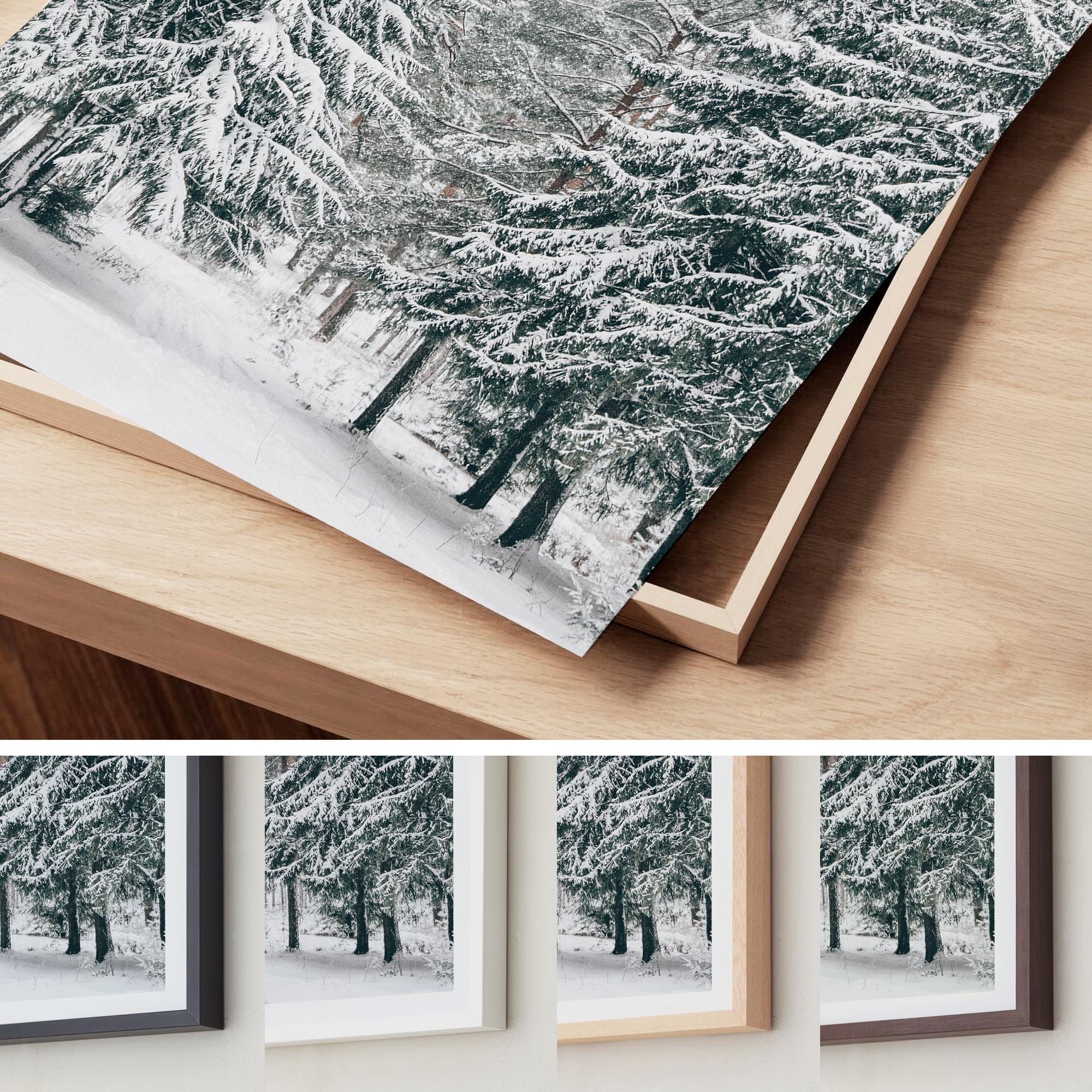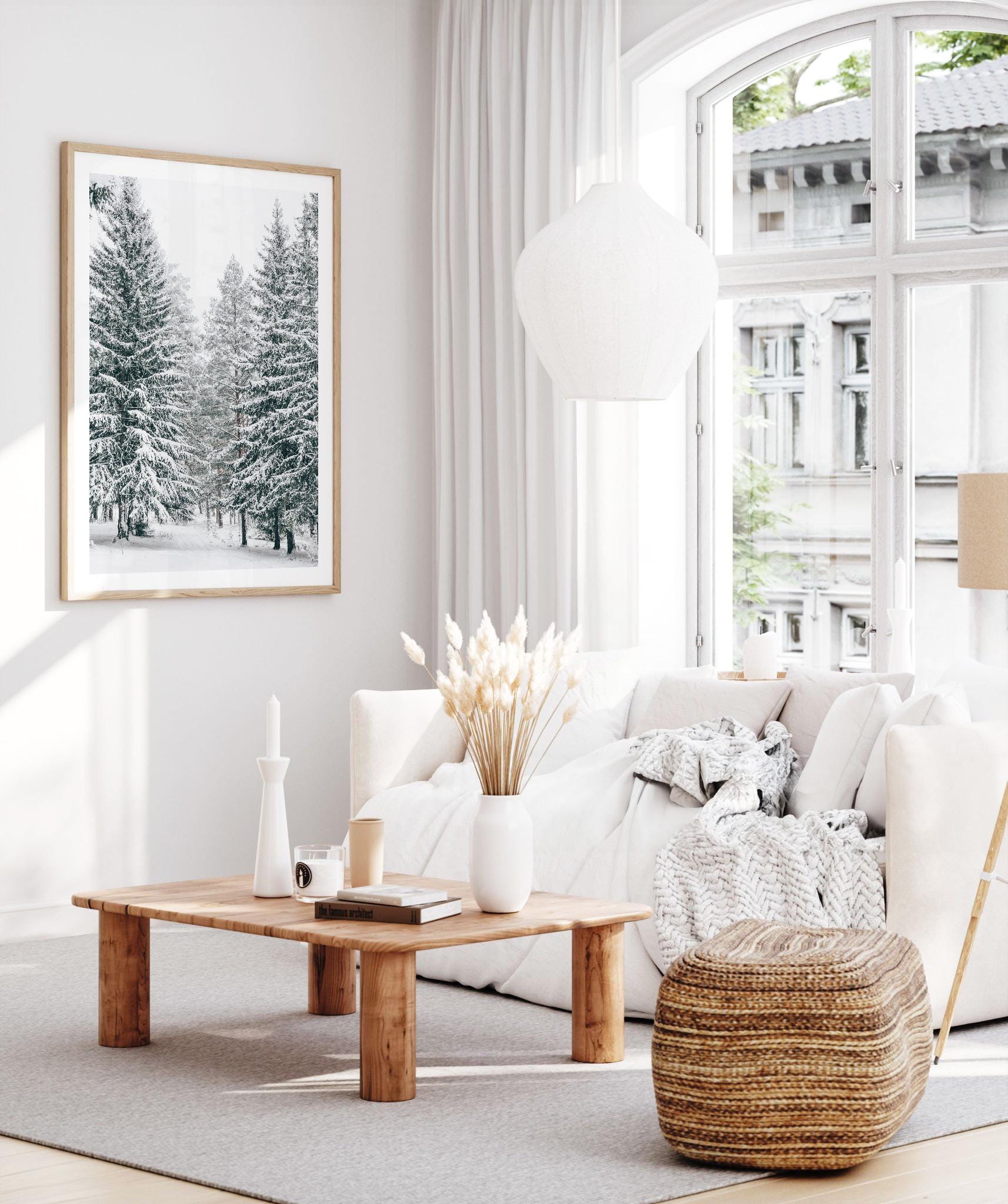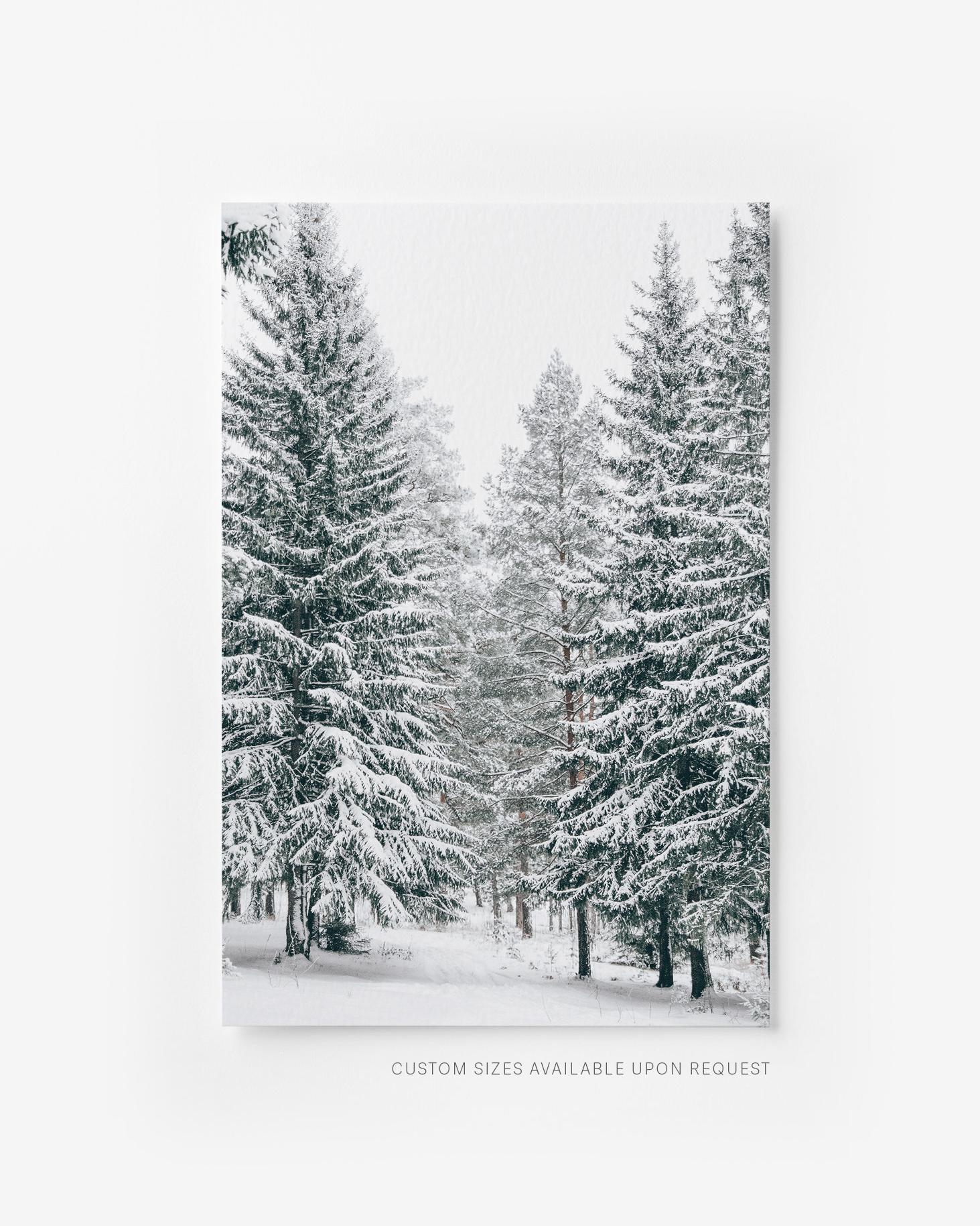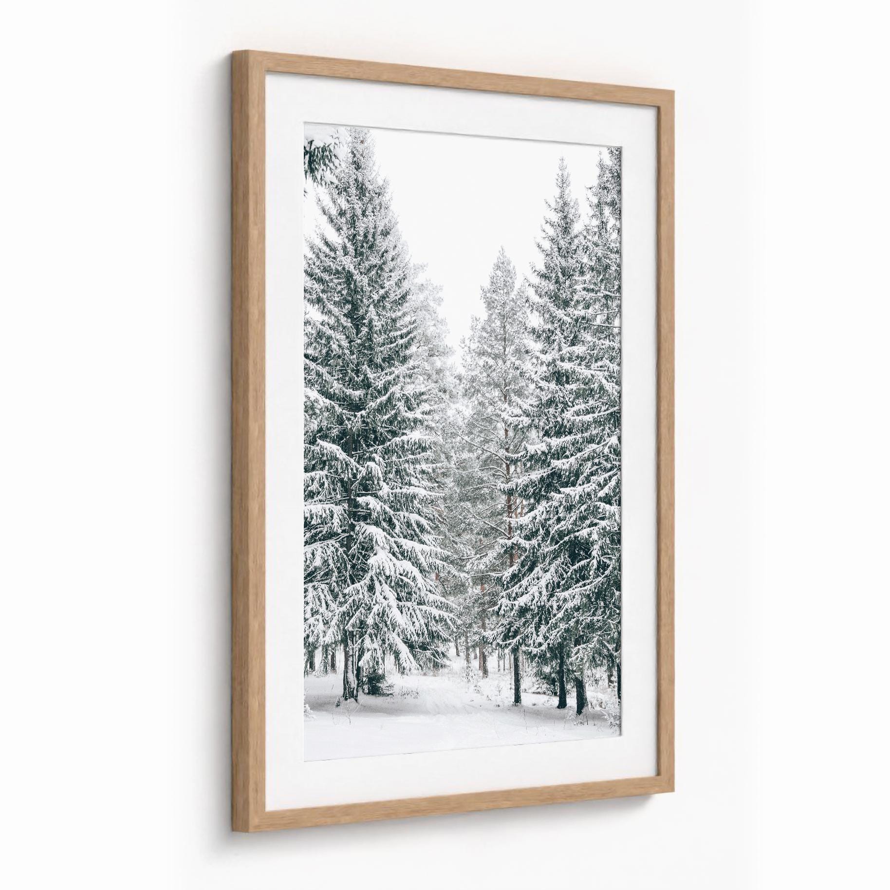 Bring a sense of calm winter stillness into your home with this softly toned snowy woodland print. Its serene composition lends effortless warmth and quiet luxury to any space.