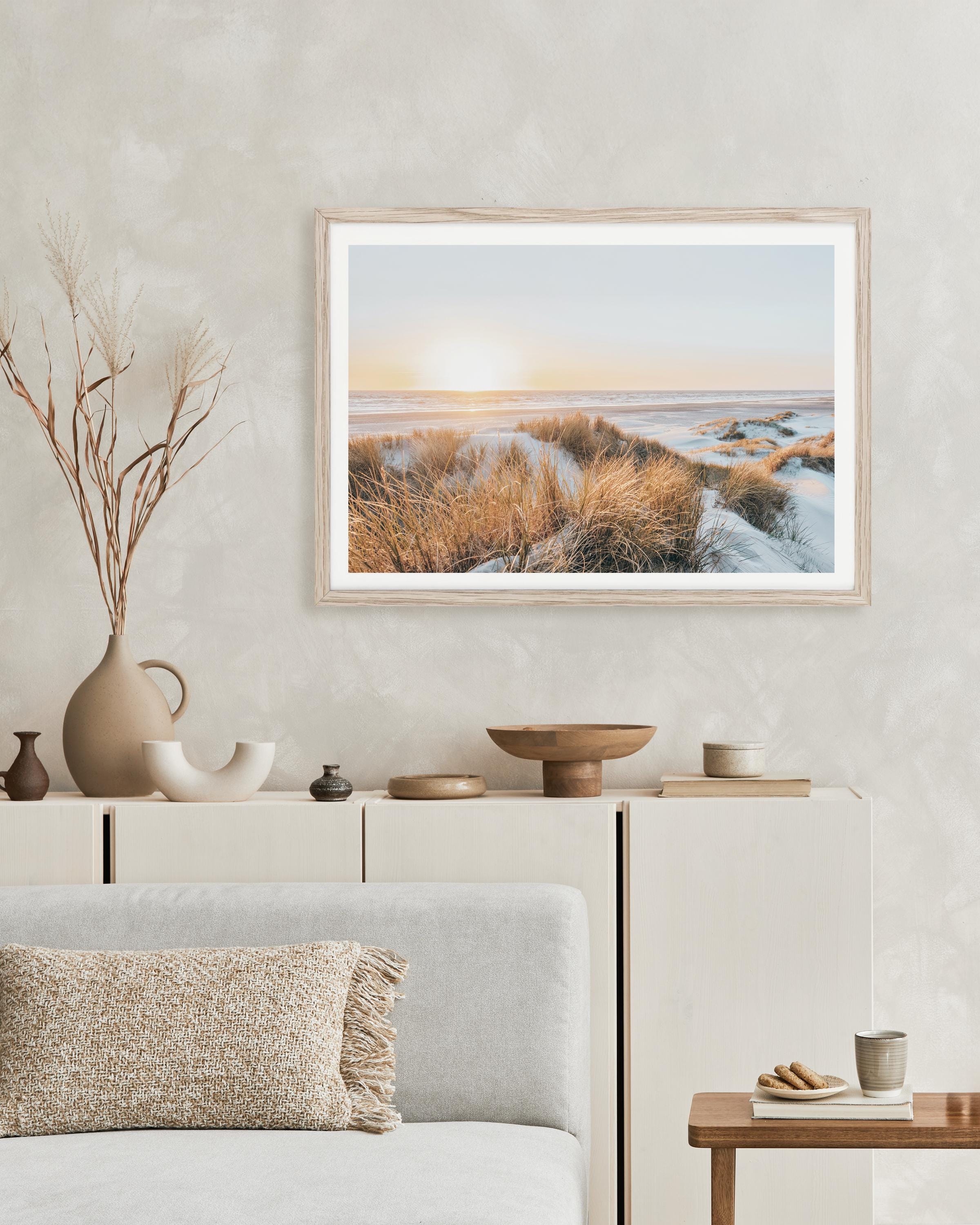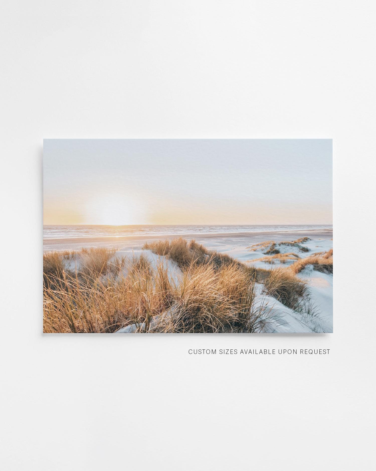 This refined piece of sunset beach photography, it brings a gentle sense of warmth and openness to any room. Warm, golden tones blend with airy coastal textures to create a peaceful atmosphere that complements neutral, minimalist, or modern interiors effortlessly.