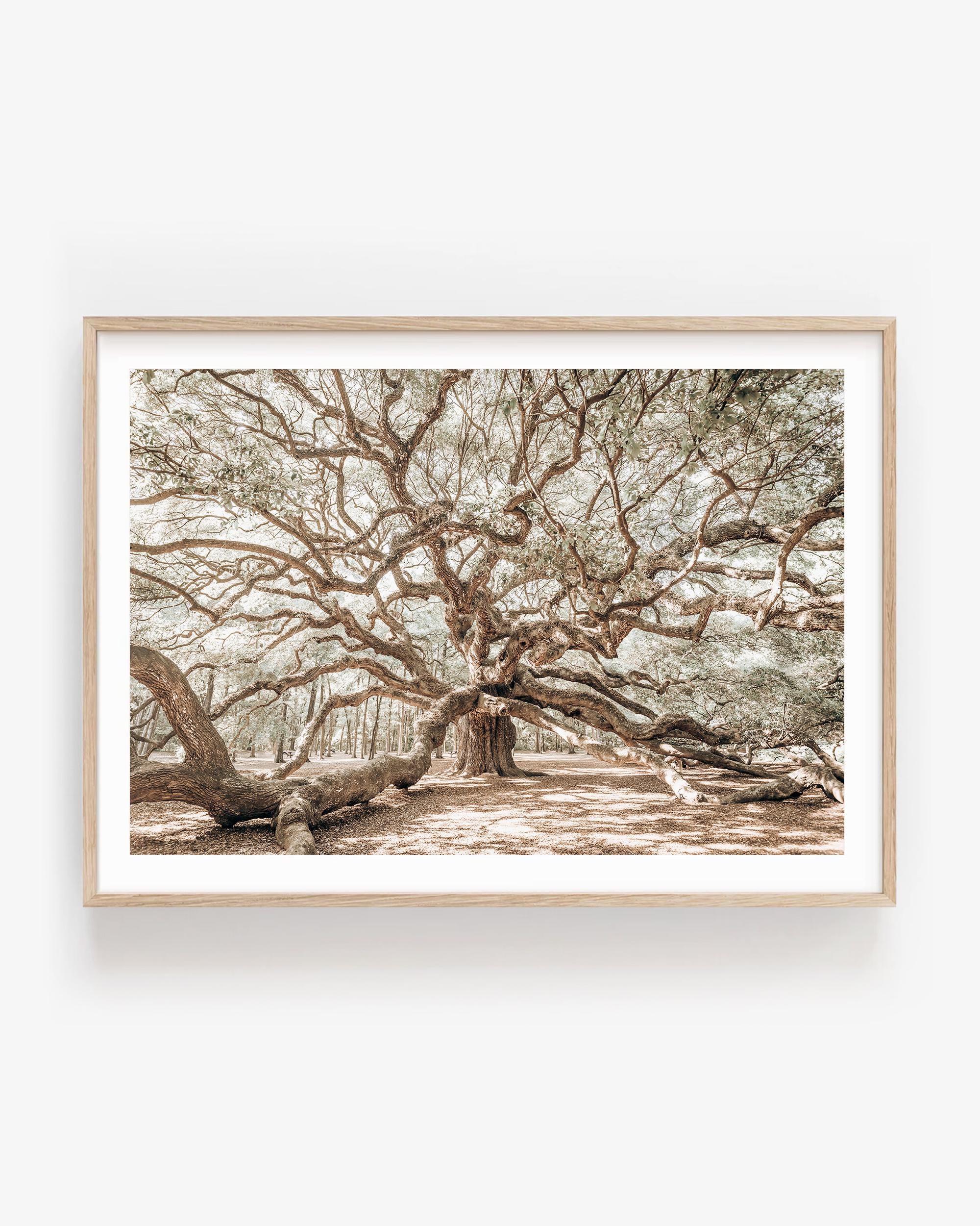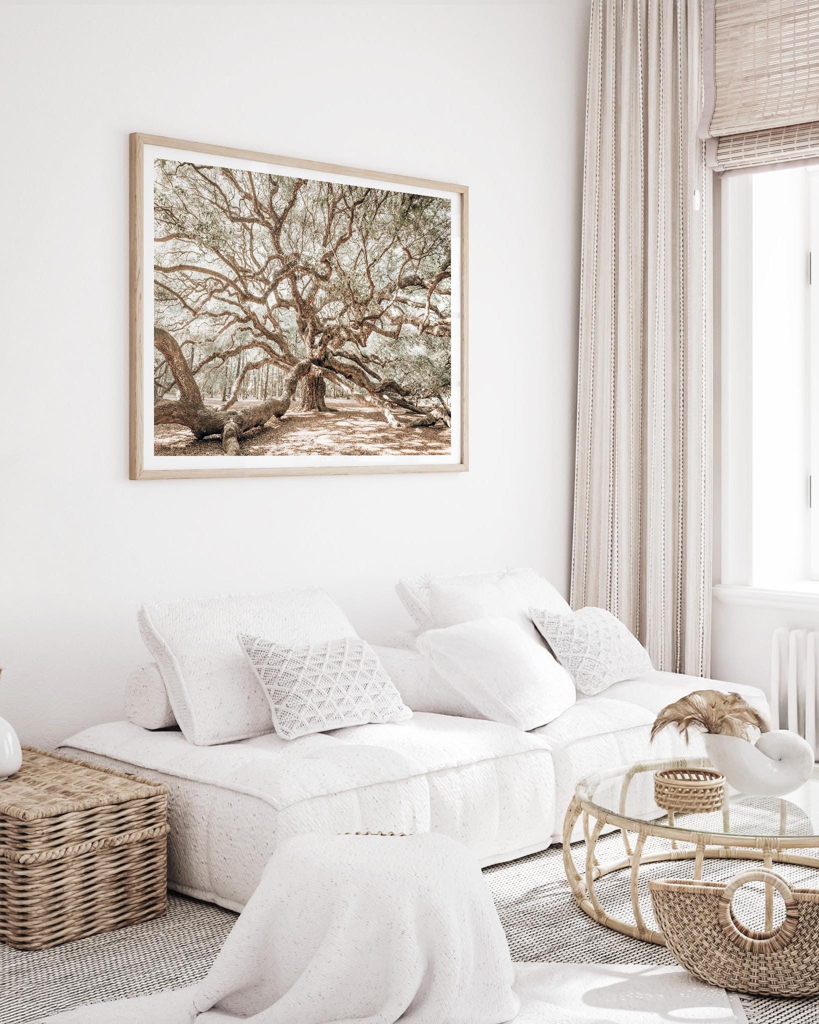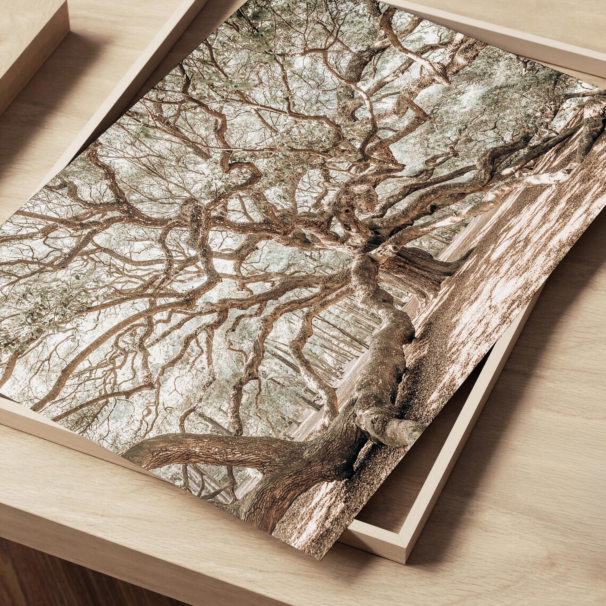 This timeless nature print highlights the elegant, branching form of a grand oak captured in soft, earthy neutrals that bring warmth and grounding to any room. Its gentle light and intricate textures create a calming, contemplative atmosphere, perfect for refined, nature-inspired interiors.
