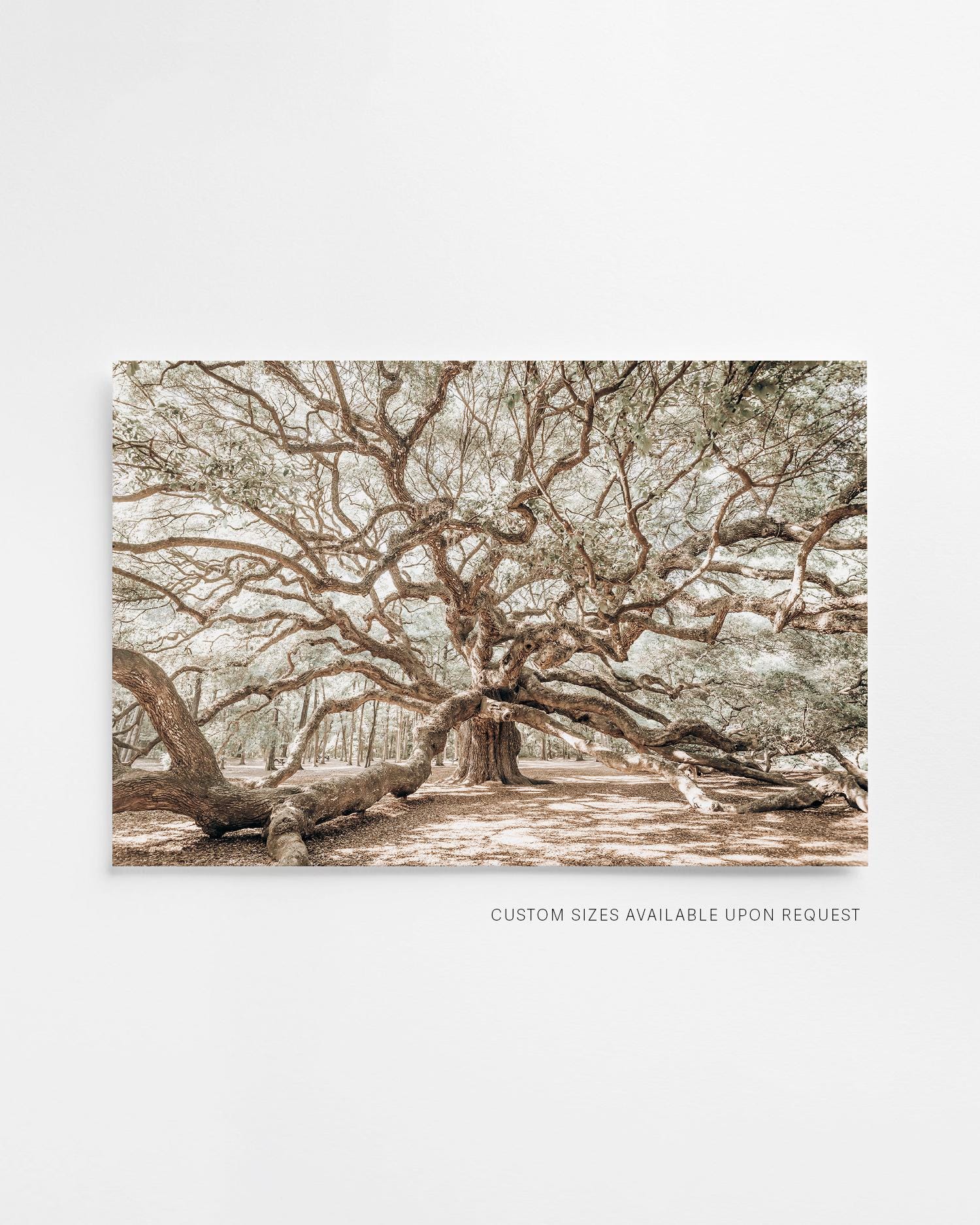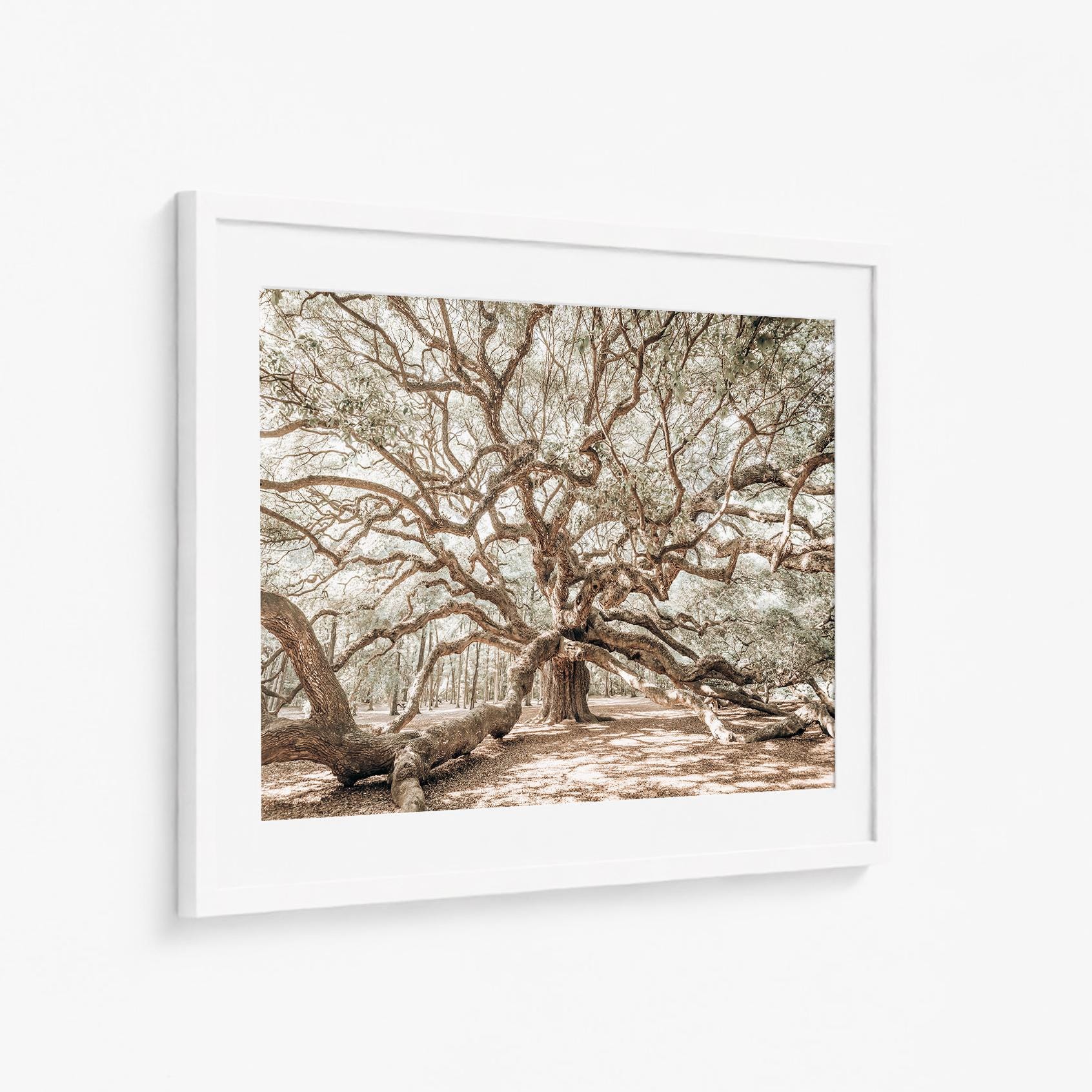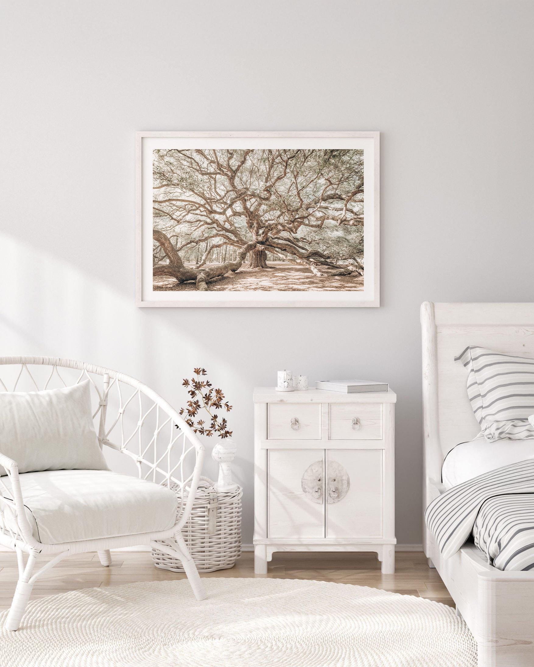 This timeless nature print highlights the elegant, branching form of a grand oak captured in soft, earthy neutrals that bring warmth and grounding to any room. Its gentle light and intricate textures create a calming, contemplative atmosphere, perfect for refined, nature-inspired interiors.