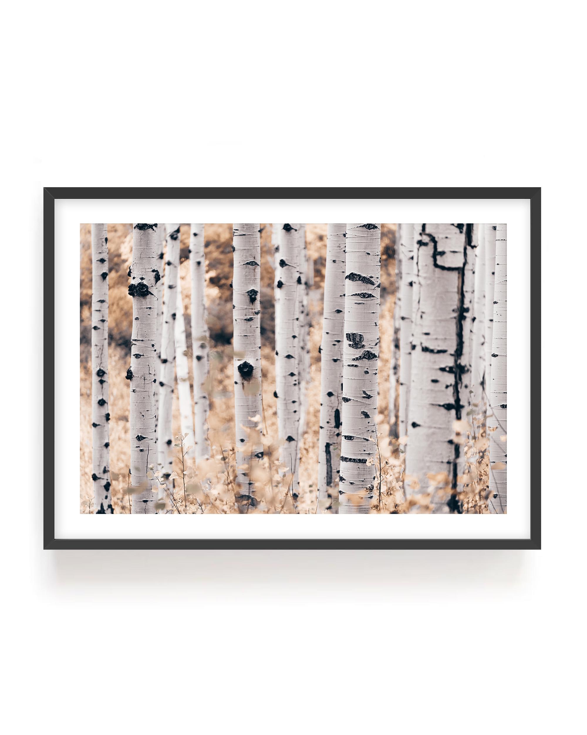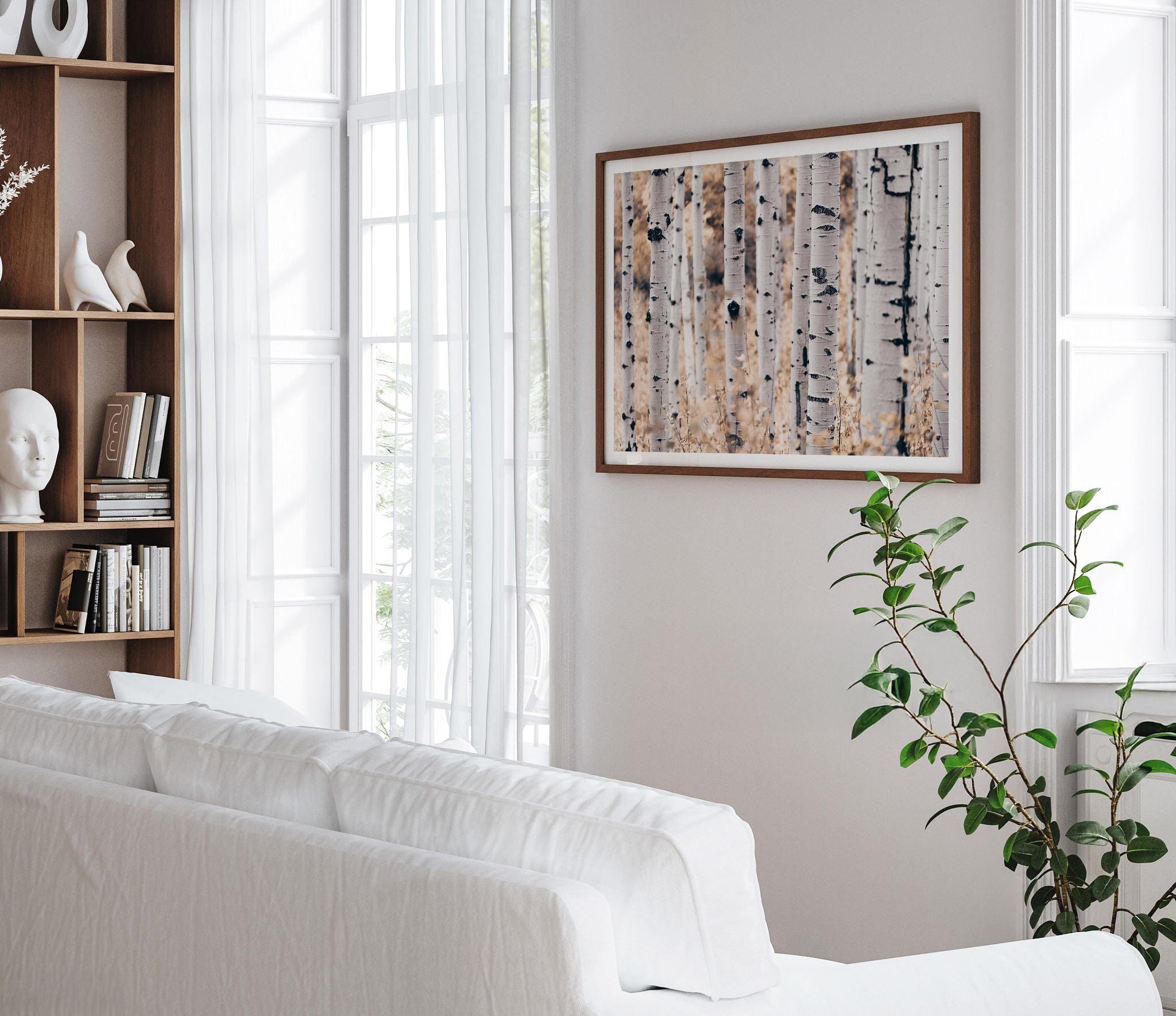 Nature Wall Art – Neutral Aspen Tree Photography, Minimal Forest Print