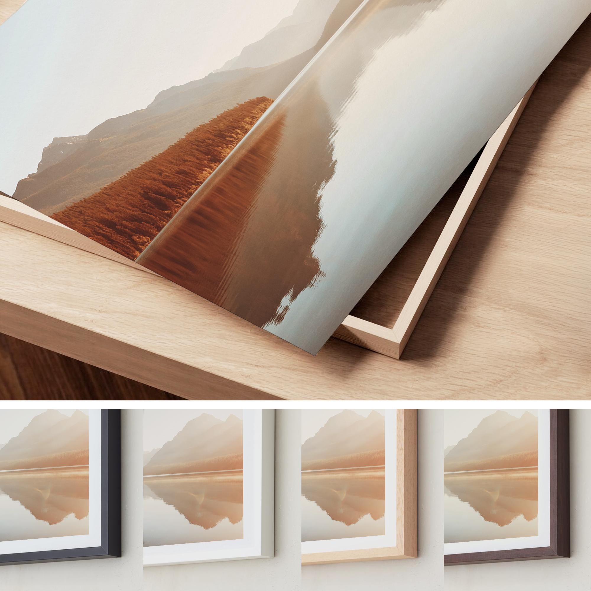 • Sizes refer to the visible print area inside the frame. Matted options keep the same frame size, but reduce the visible artwork area slightly.