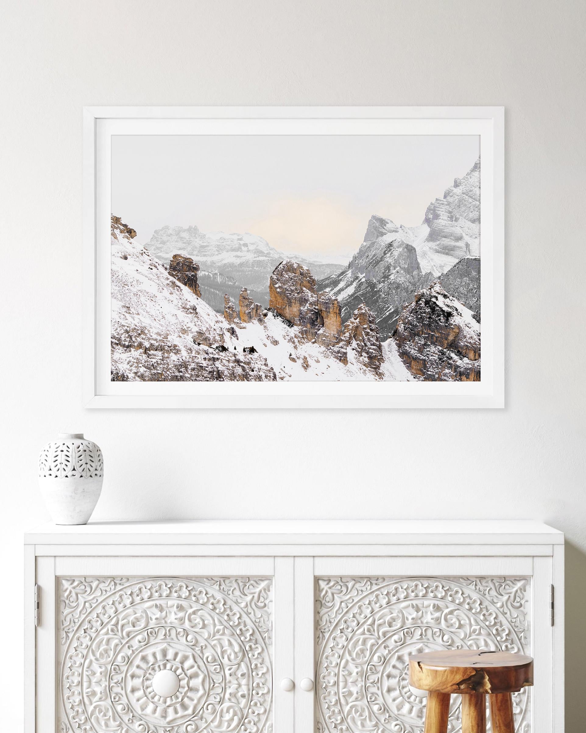 Dolomites Snowy Mountains Wall Art Print - Alpine Landscape Fine Art Photography